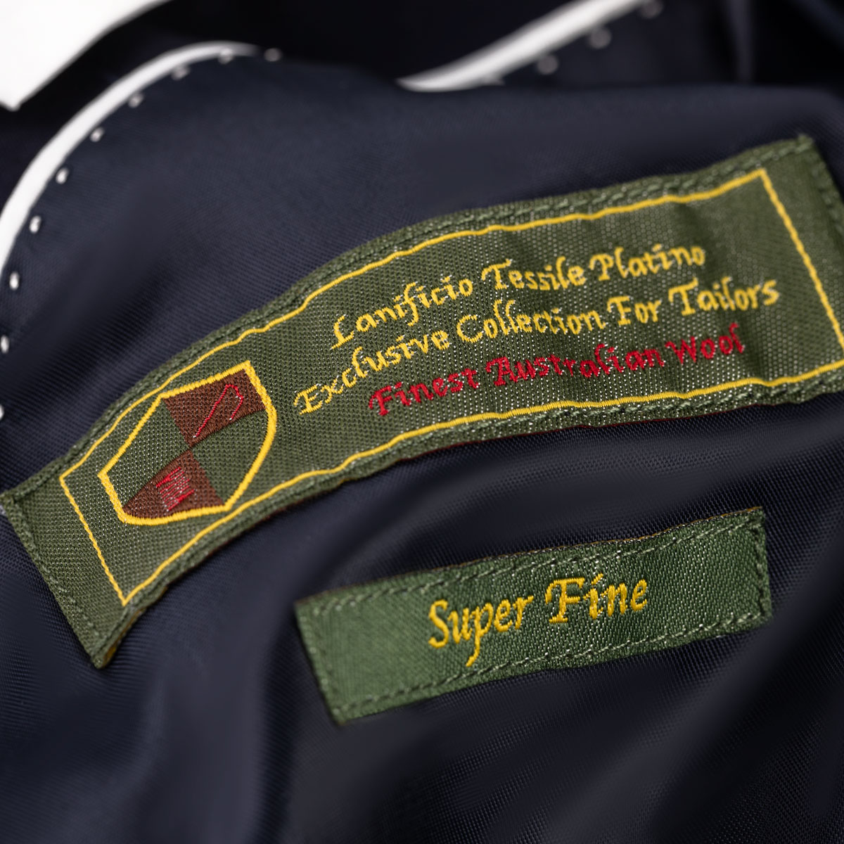 Der Oberstoff besteht zu 87% aus Wolle, zu 6,5% aus Polyester und zu 6,5% aus Elasthan superfine. Das Gewebe sorgt dafür, dass der Anzug eine glatte Oberfläche aufweist und leicht wasserabweisend ist.