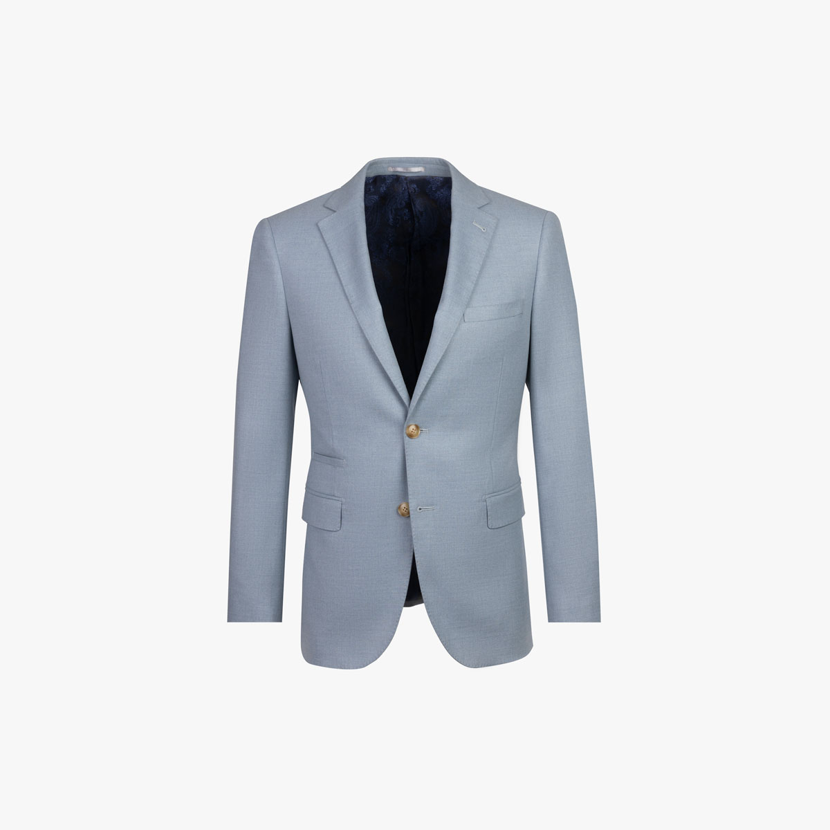 Das Sakko verfügt über eine Billetttasche auf der rechten Seite, die für ein zusätzliches elegantes Detail sorgt. Dank des Vollfutters bleibt dem Träger auch an kühleren Sommernächten angenehm warm.
