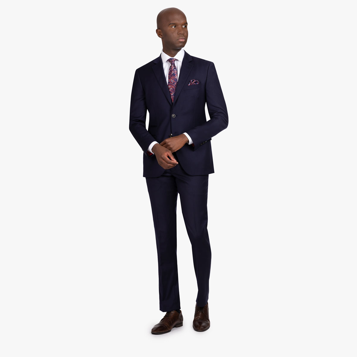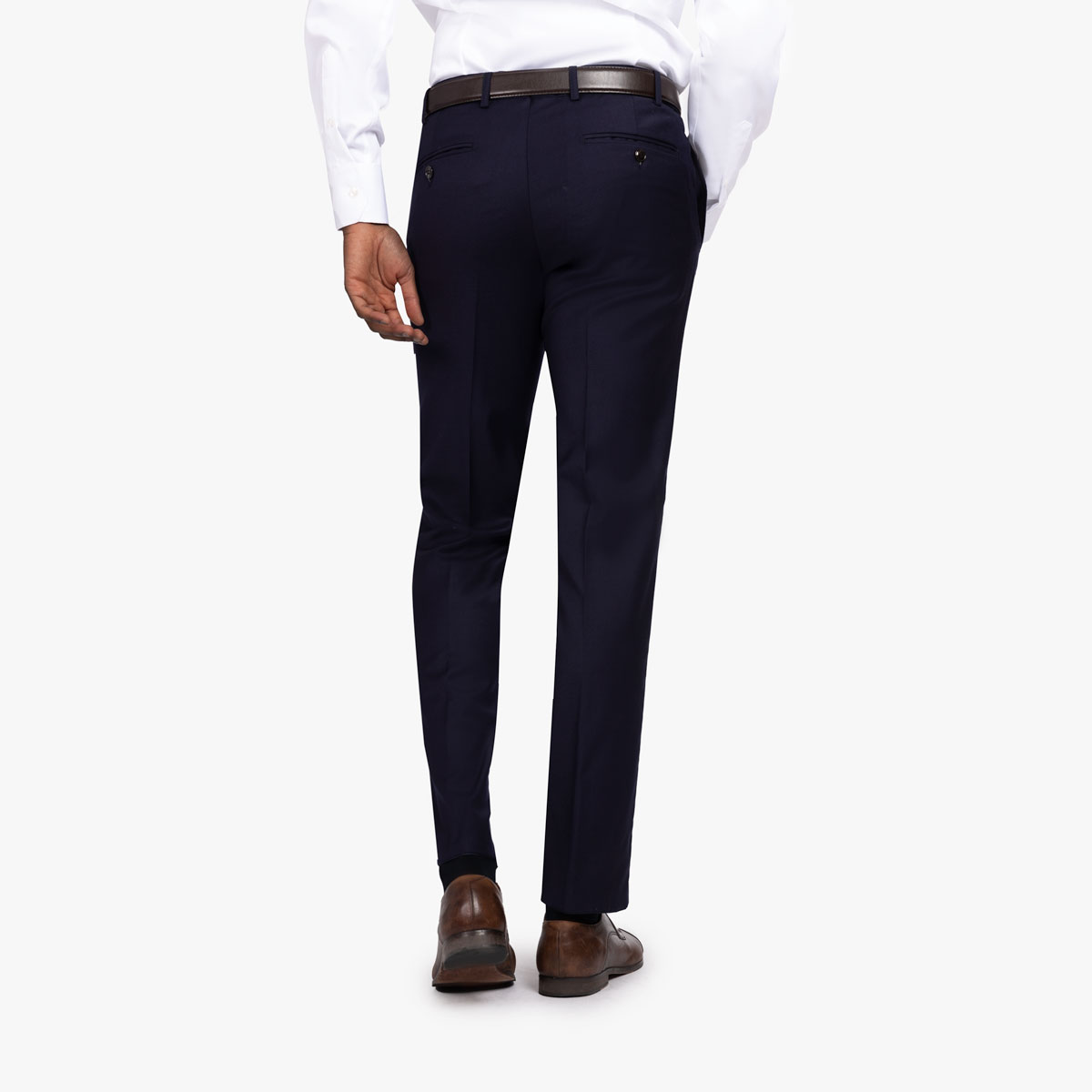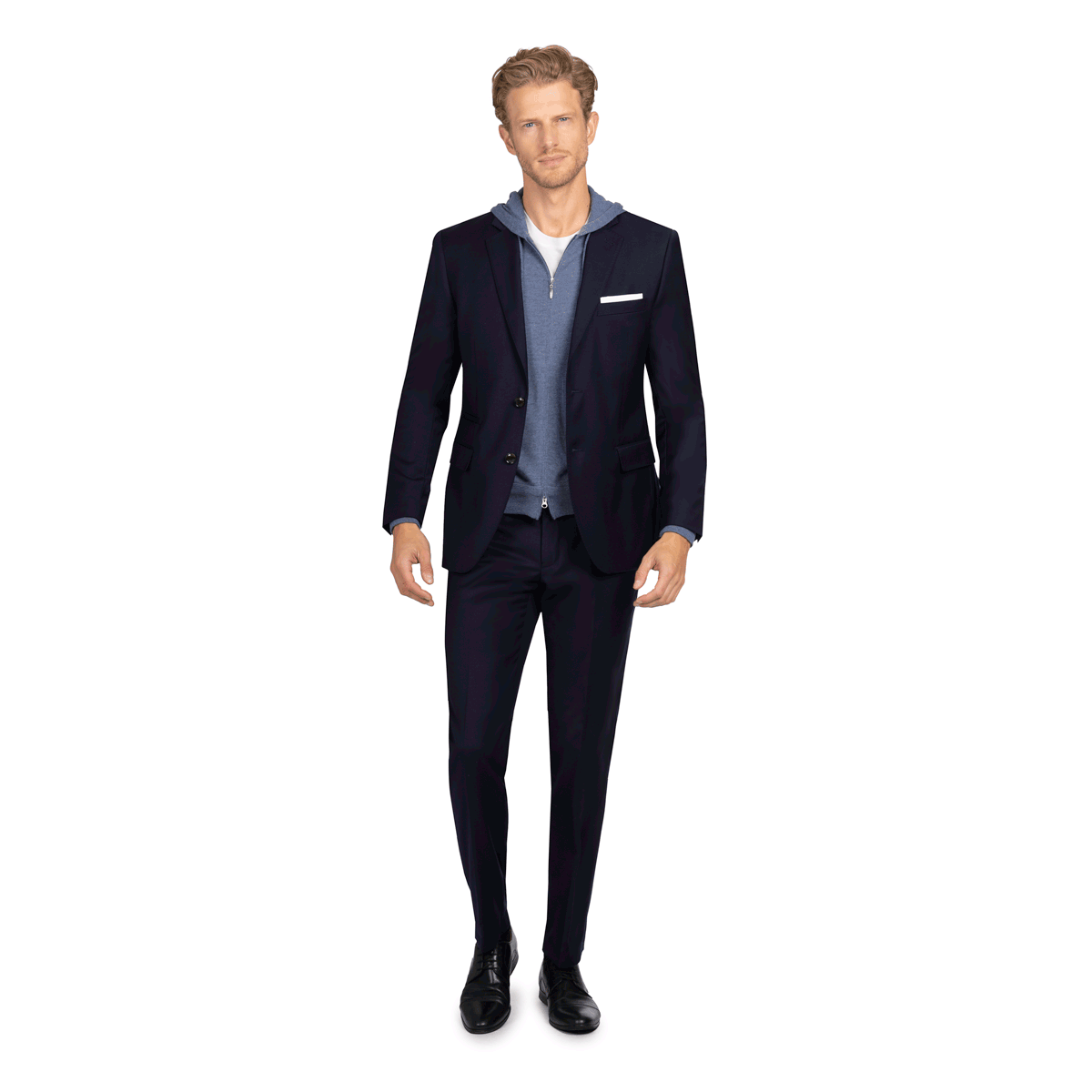 Dieser Slim Fit Anzug in dunkelblau wurde aus einer weichen Mischung aus Wolle und Elasthan gefertigt. Der teilelastische Bund (R-Bund) der Hose ermöglicht einen komfortablen Sitz.