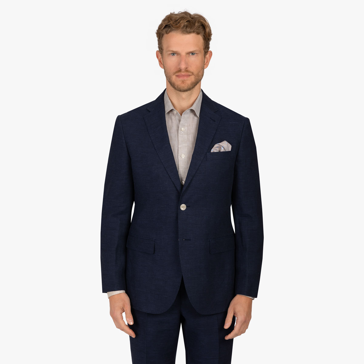 Der blaue Anzug hat einen bequemen Modern Fit und besteht aus einem angenehmen Materialmix aus Leinen und Polyester.