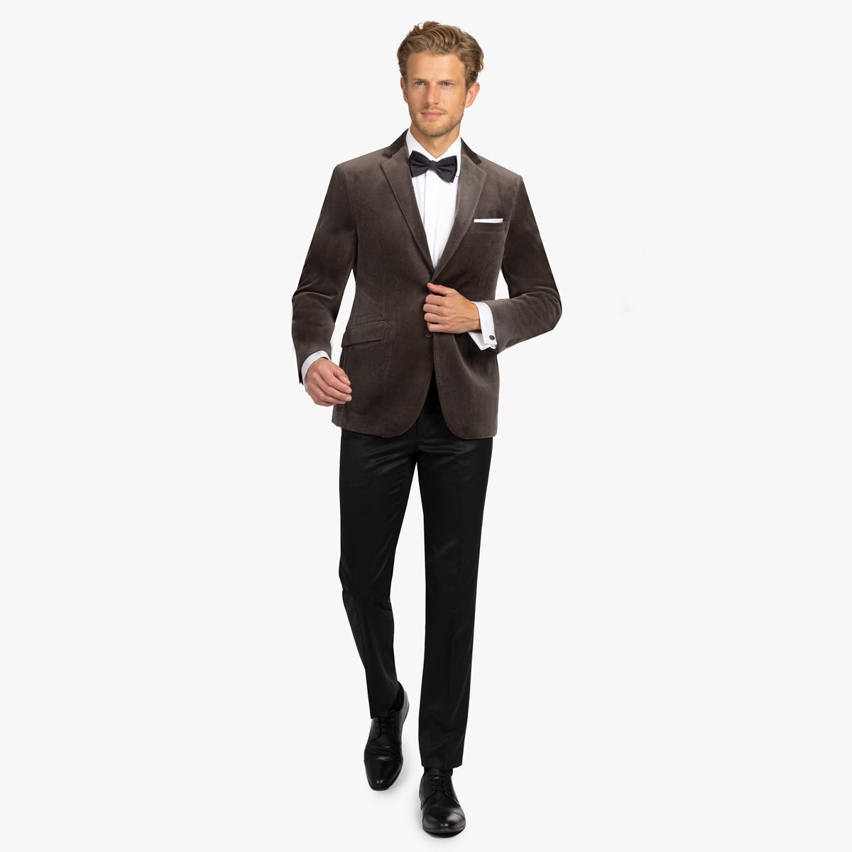 Für Ihren großen Auftritt: Die elegante Slim Fit Baukasten-Kombination besteht aus einem Samtsakko in anthrazit und einer schwarzen Smoking-Hose.