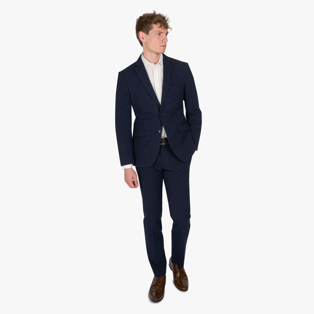Baukastenanzug Genf in Dunkelblau in Seersucker-Optik
