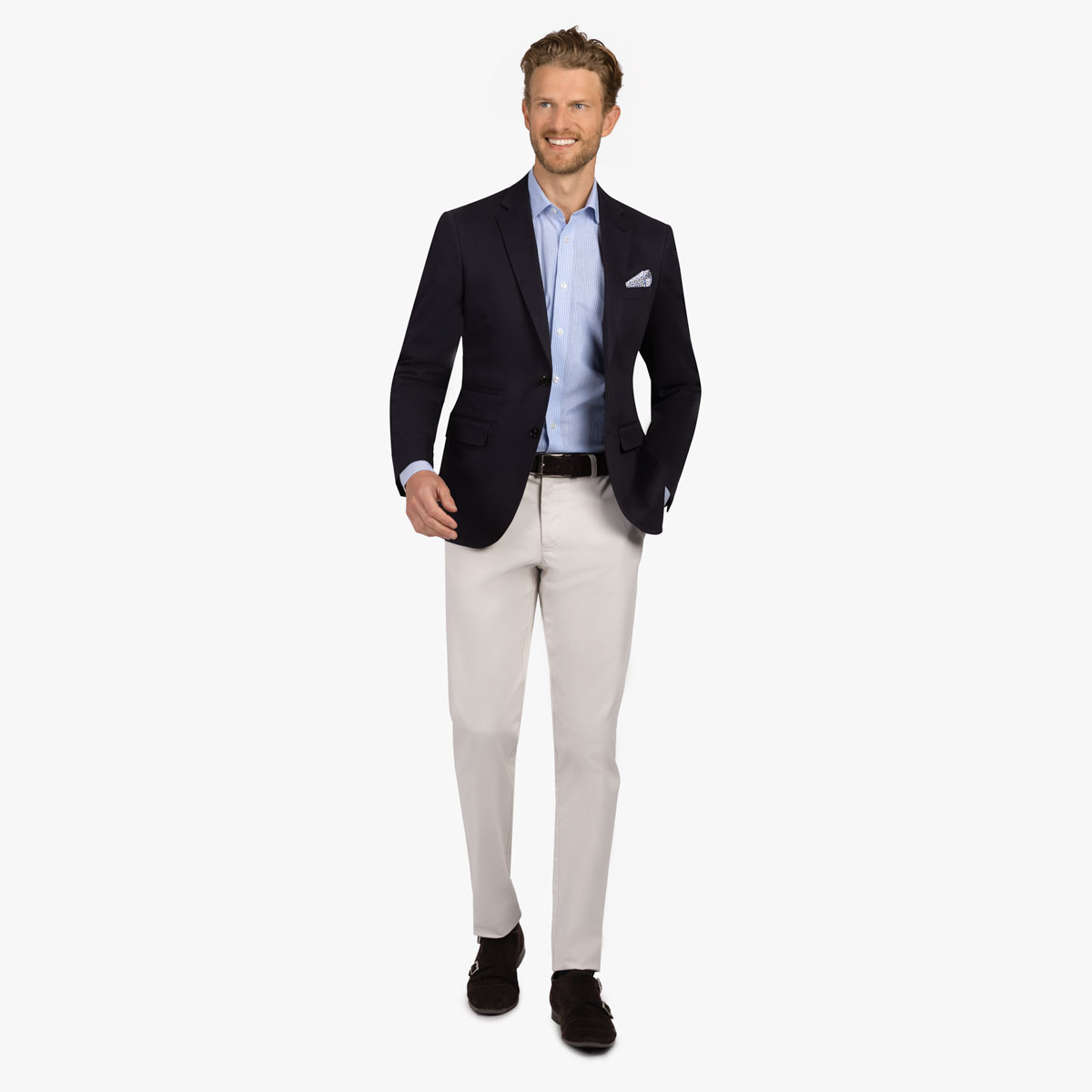 Mix and Match! Dank des Baukastensystems können sie sich Sakko und Hose in der passenden Größe separat voneinander zusammenstellen.