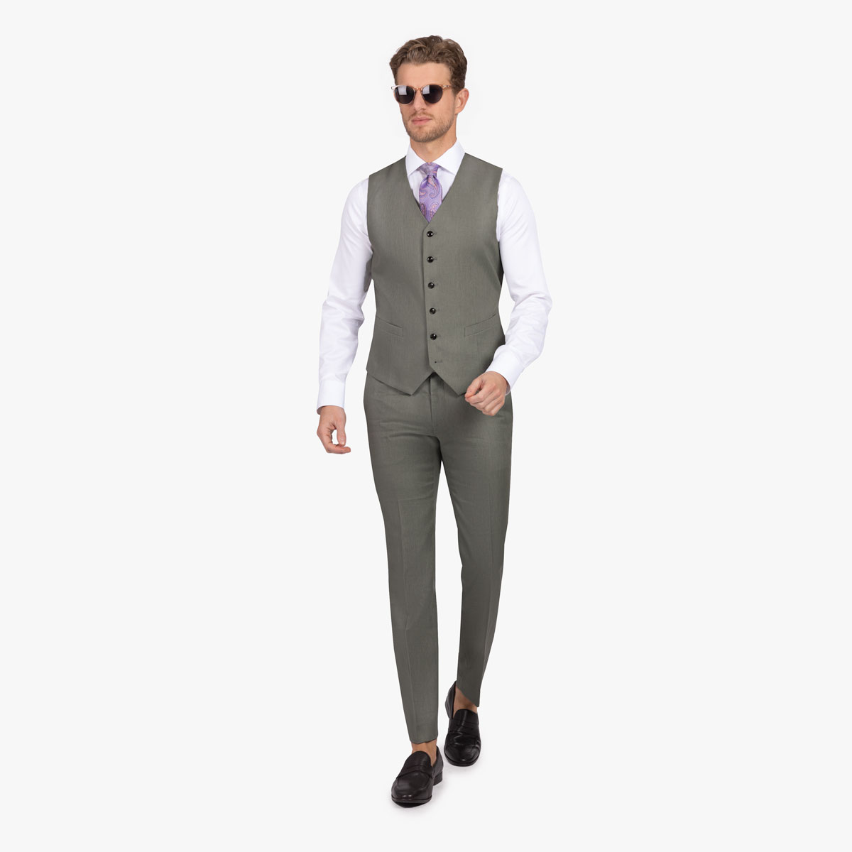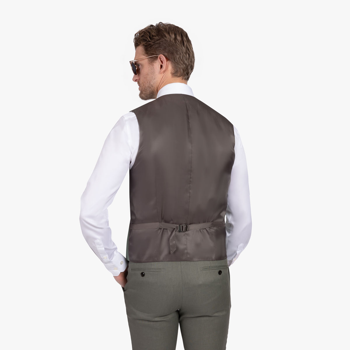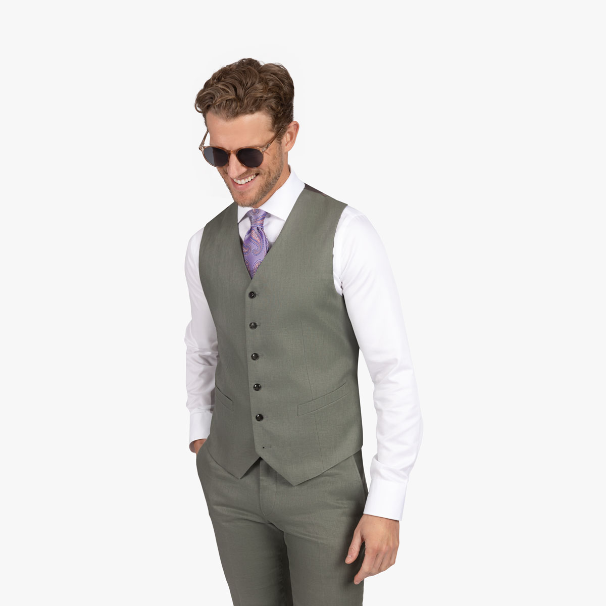 Der Oberstoff des dreiteiligen Baukastenanzugs in grün besteht zu 100% aus Leinen. Das Sakko hat ein luftiges Halbfutter, welches dafür sorgt, dass die angenehmen und temperaturregulierenden Eigenschaften des Leinens besonders gut zur Geltung kommen können.