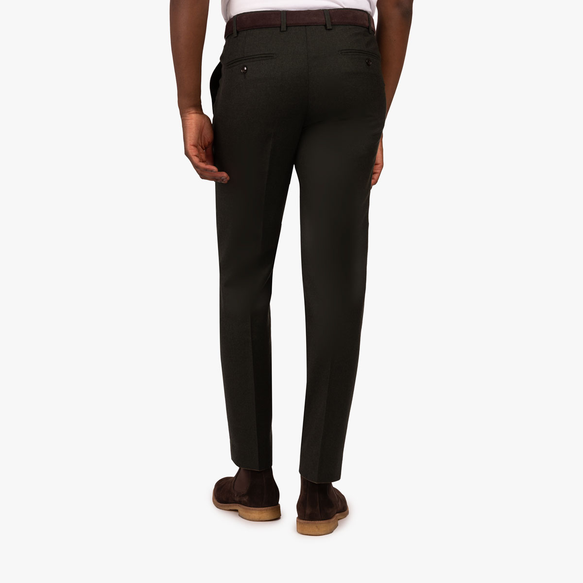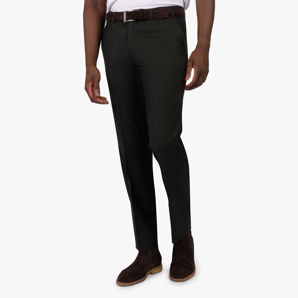 Die dunkelgrüne Baukastenhose hat eine gemäßigte Passform (Modern Fit) und besteht aus reiner Wolle in S 100er Qualität.