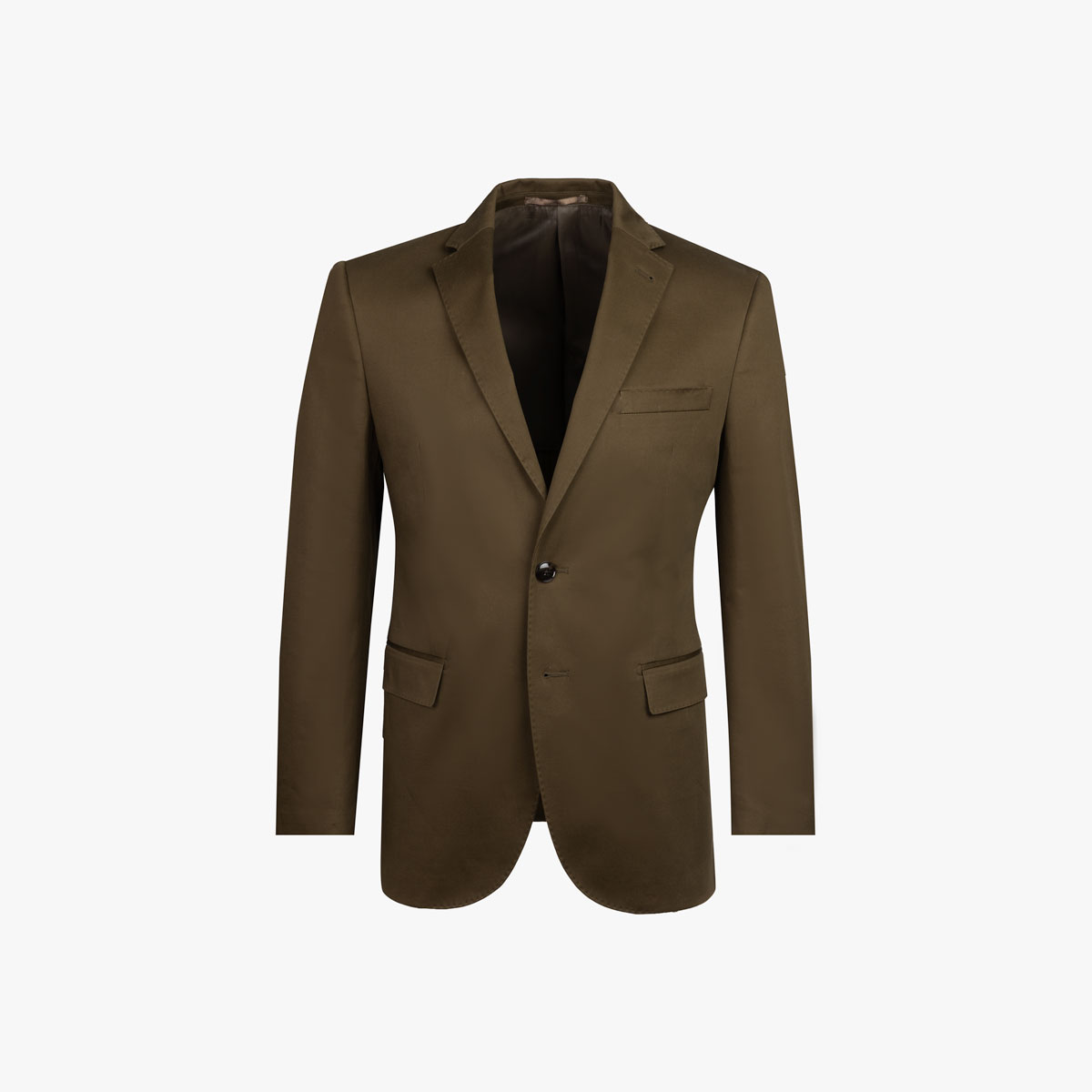 Das Herrensakko ist Slim Fit geschnitten und besteht aus einem Baumwolle-Elasthan-Gemisch.