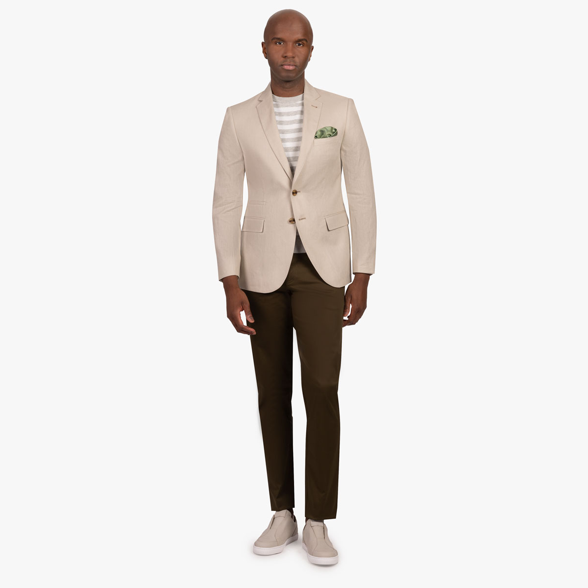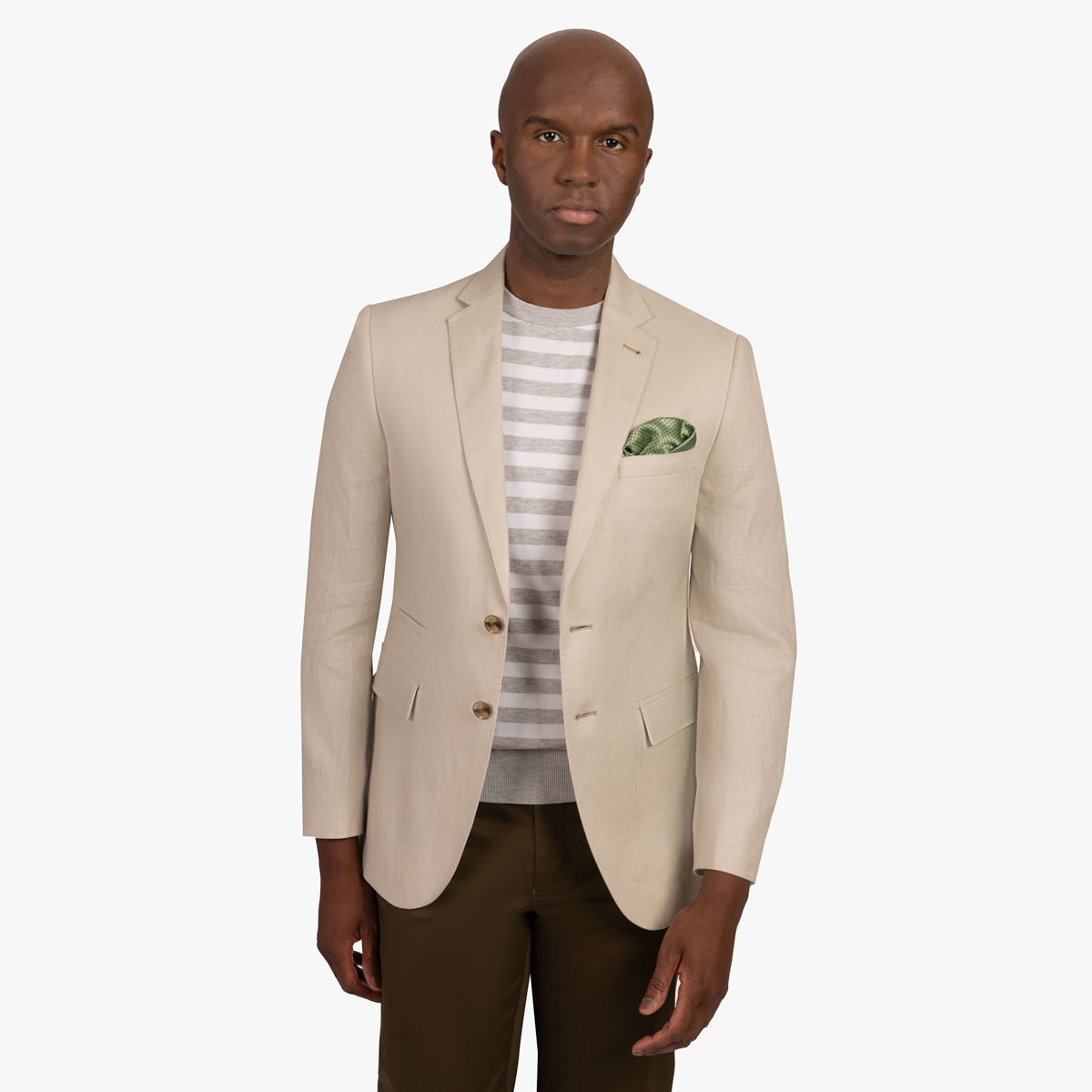 Der Oberstoff des Baukastensakkos in beige besteht zu 100% aus Leinen. Das Sakko hat ein luftiges Halbfutter, welches dafür sorgt, dass die angenehmen und temperaturregulierenden Eigenschaften des Leinens besonders gut zur Geltung kommen können.