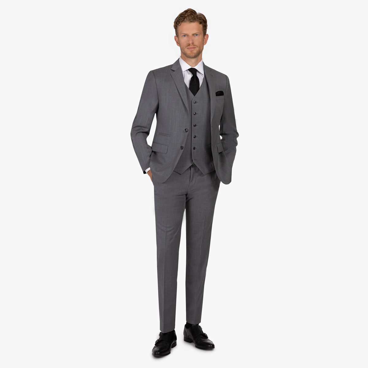 Aus reiner 120's Wolle gefertigt, bildet dieses graue Slim Fit Sakko zusammen mit der passenden Hose einen modernen Anzug, der sowohl im Business als auch zu festlichen Anlässen eine gute Figur macht. Der körpernahe Schnitt sorgt für eine schlanke Silhouette und ein modernes Erscheinungsbild. Stilvolles Extra ist die zusätzliche Billetttasche auf der rechten Seite.