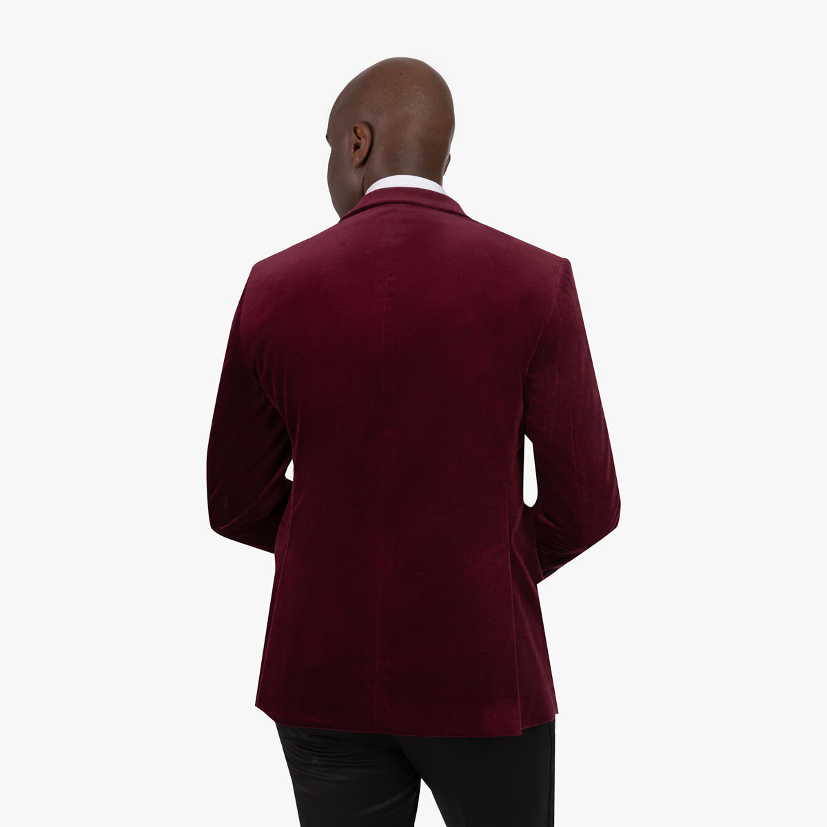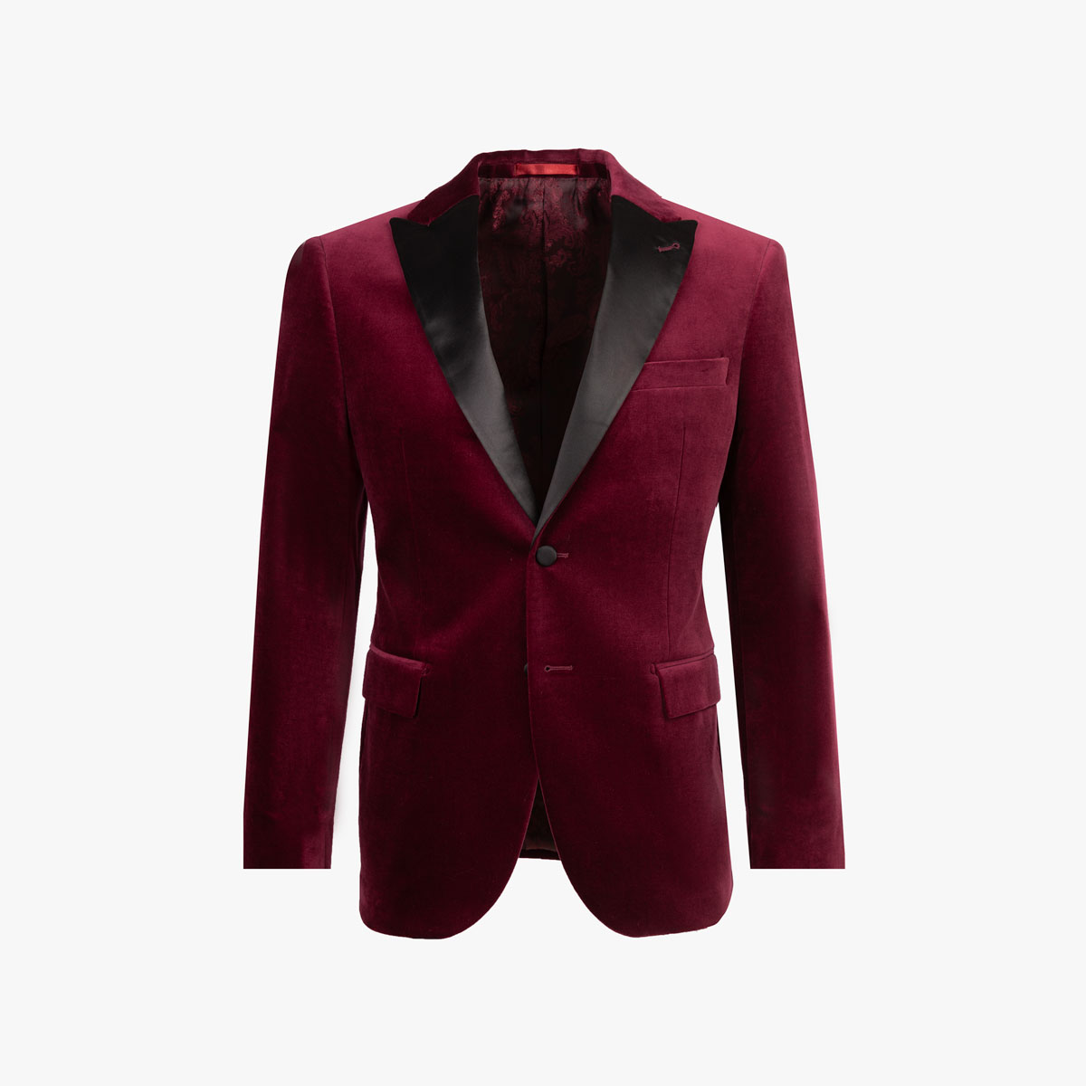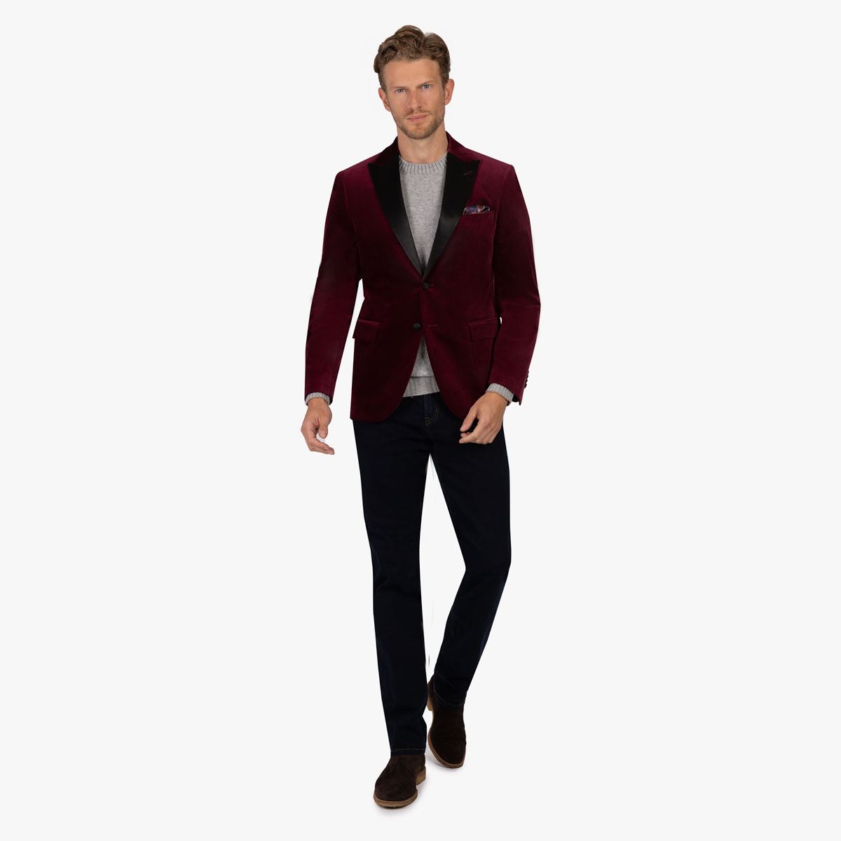 Baukastensmoking Fano aus Samt in burgunderrot und schwarz