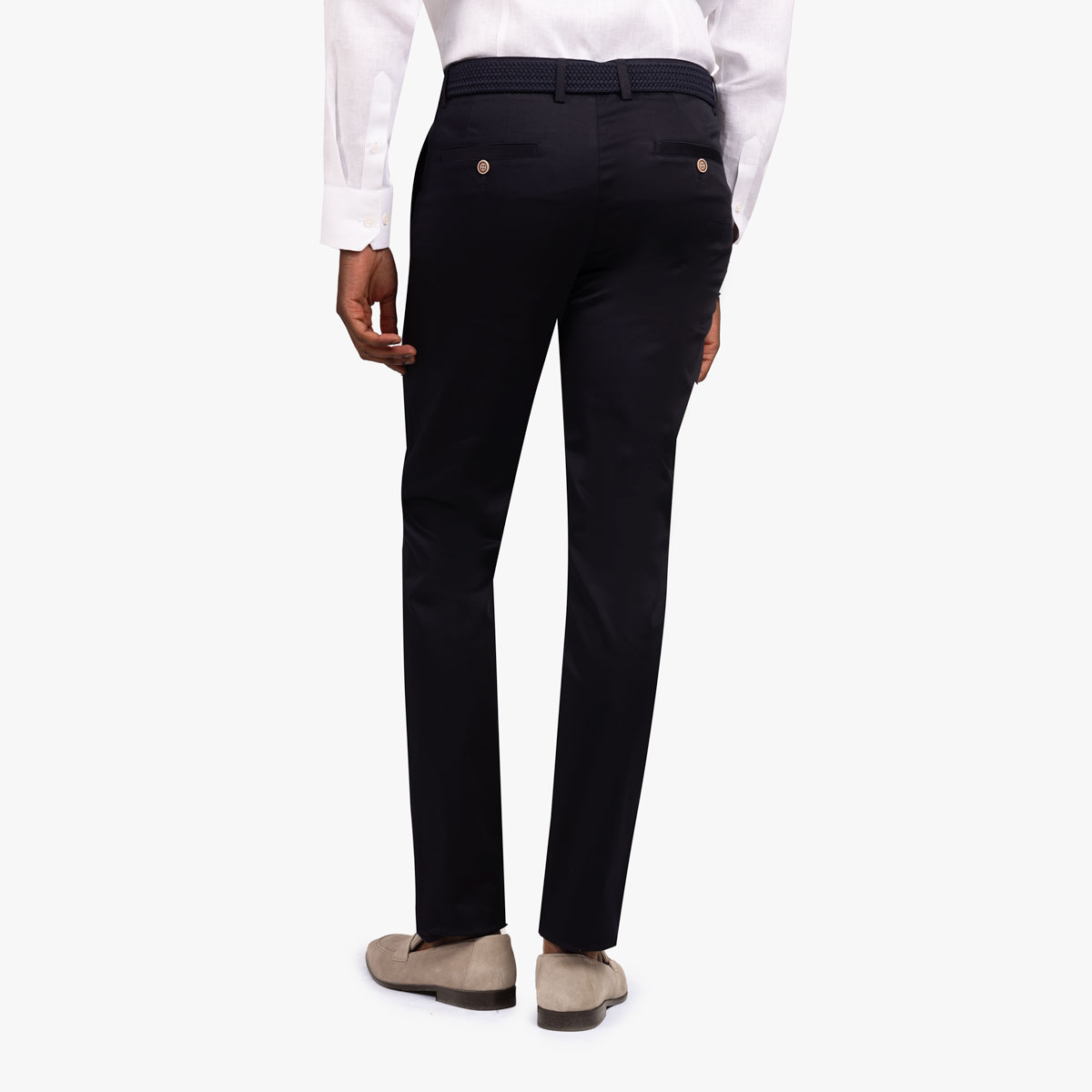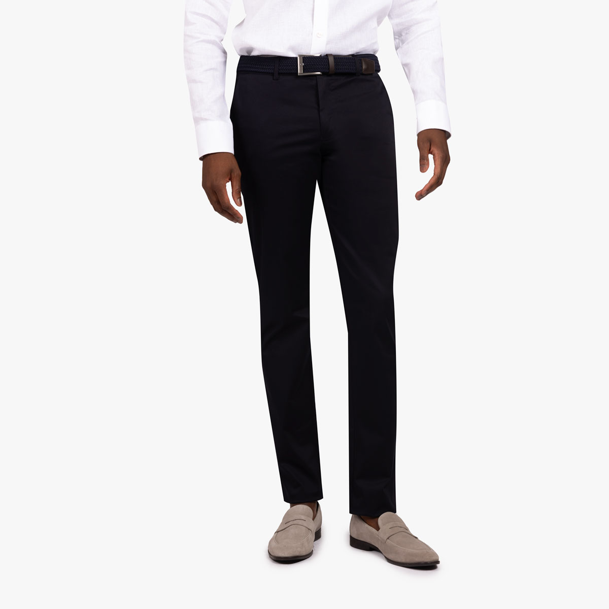 Die dunkelblaue Farbe lässt sich mühelos mit einem hellbraunen Lederschuh oder Sneakern kombinieren. Auch andere Casual-Artikel, wie unserer Pullover oder Leinenhemden, lassen sich gut für jedes Wetter mit der Chino verbinden.