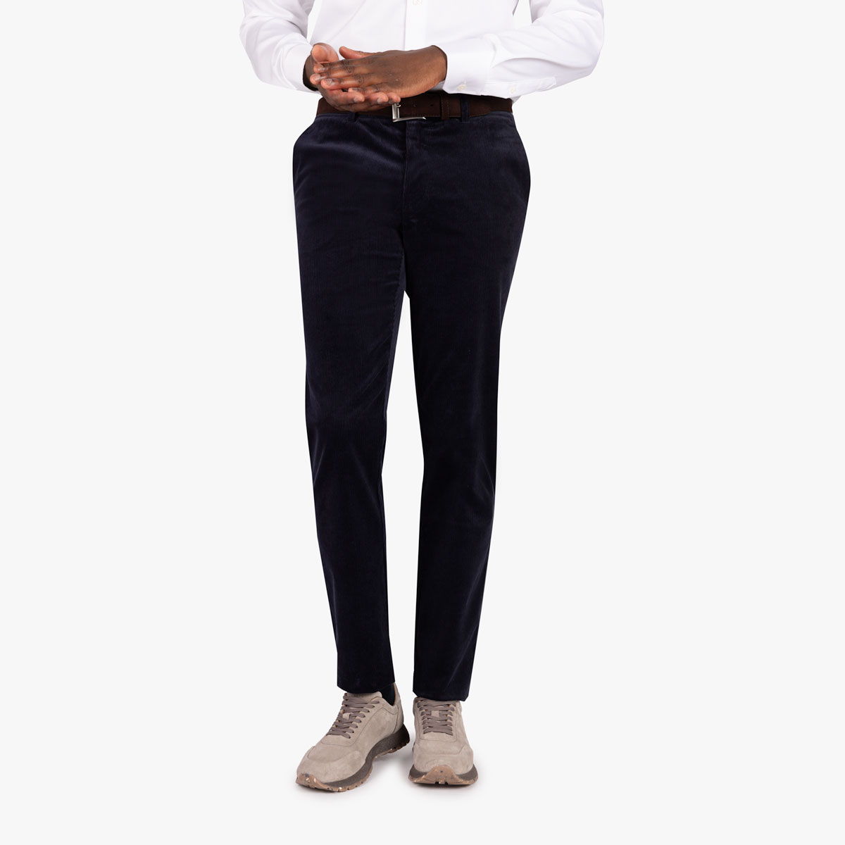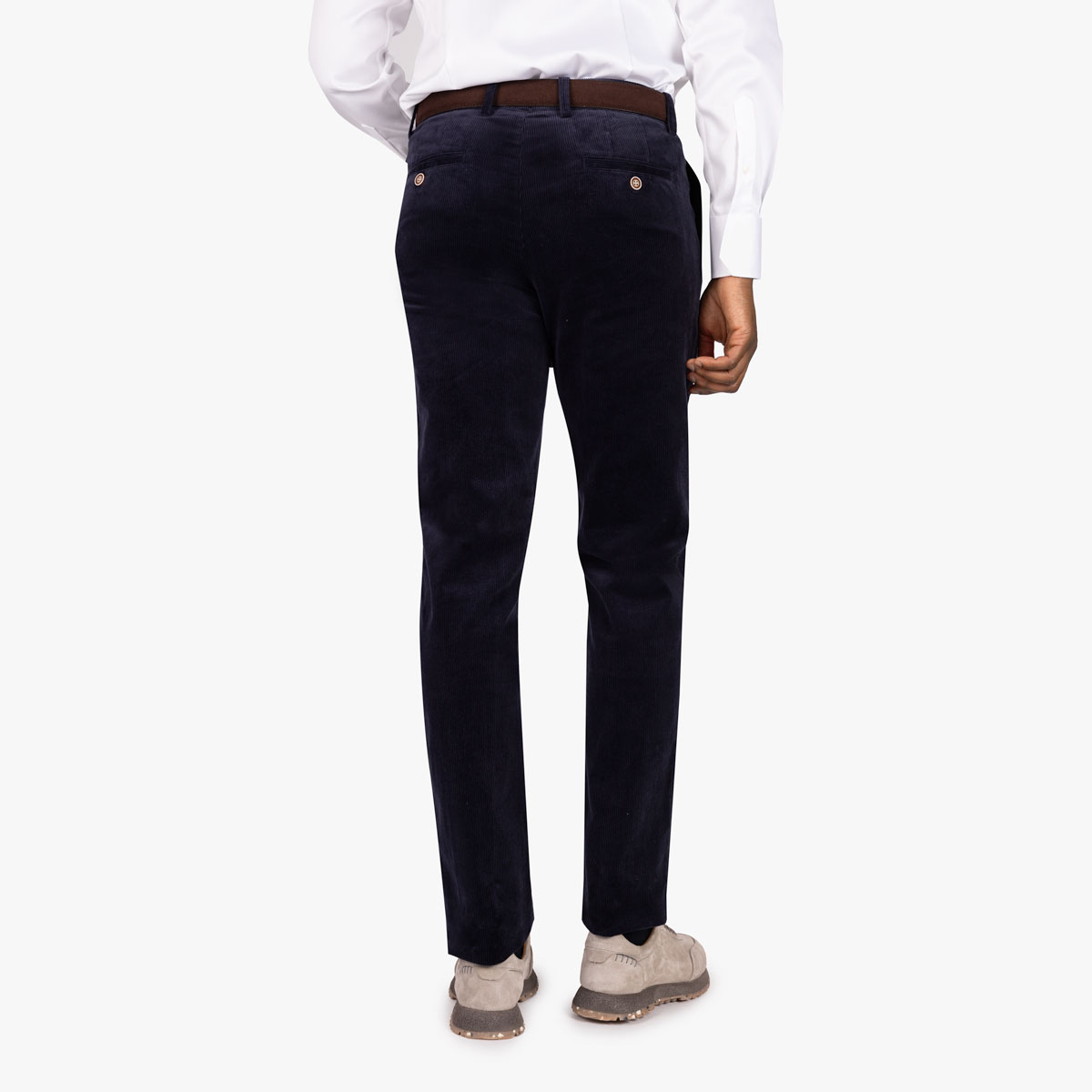 Die dunkelblaue Chino aus hochwertigem Cordstoff bietet nicht nur ein angenehmes Tragegefühl, sondern überzeugt auch durch ihre Strapazierfähigkeit. Vielseitig kombinierbar, verleiht sie Ihrem Look mit einem Hemd oder T-Shirt eine lässige Note. Besonders harmonisch wirkt sie in Kombination mit dem Sakko Genf/S 1946/84 aus dem gleichem Stoff.
