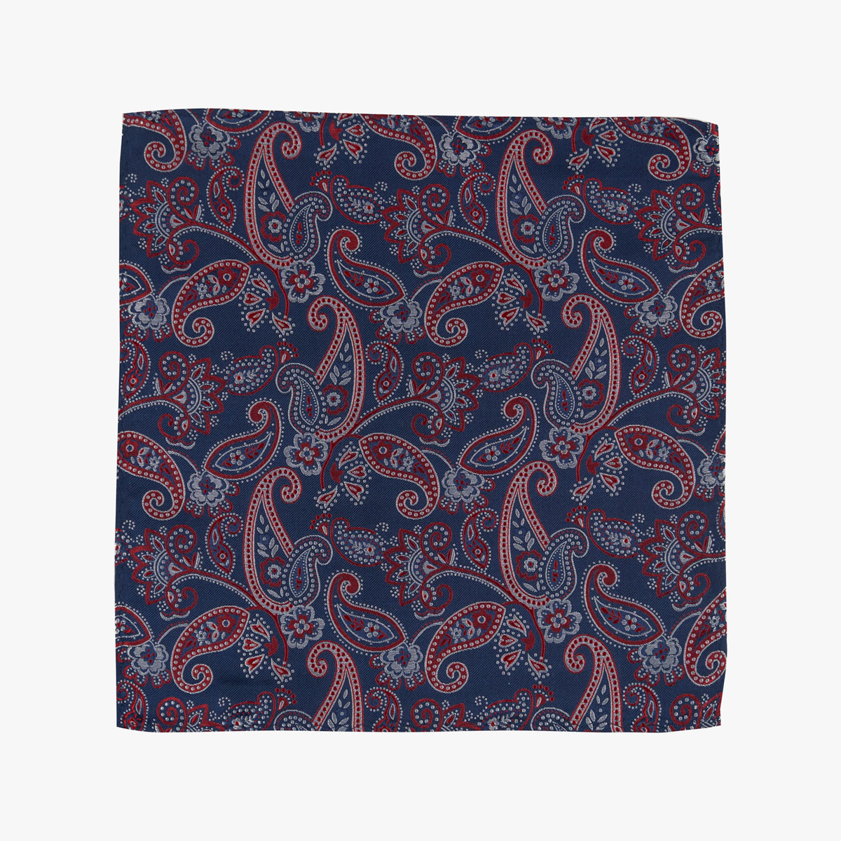 Einstecktuch aus reiner Seide in Blau mit Paisley-Muster in Rot