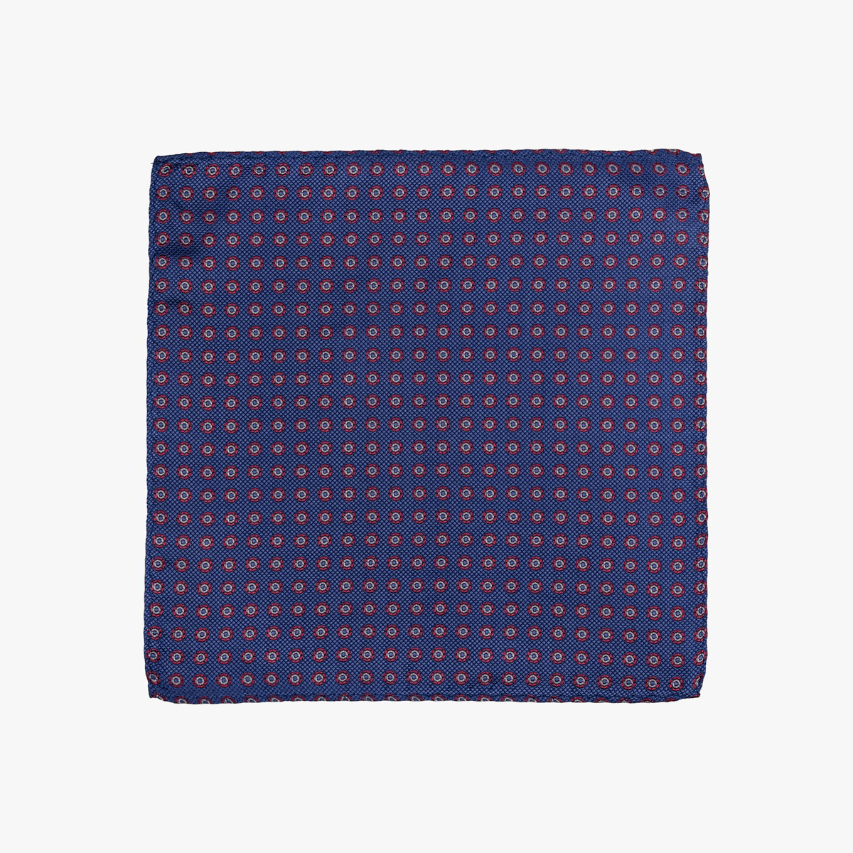 Einstecktuch aus Seide in dunkelblau mit orangem Muster
