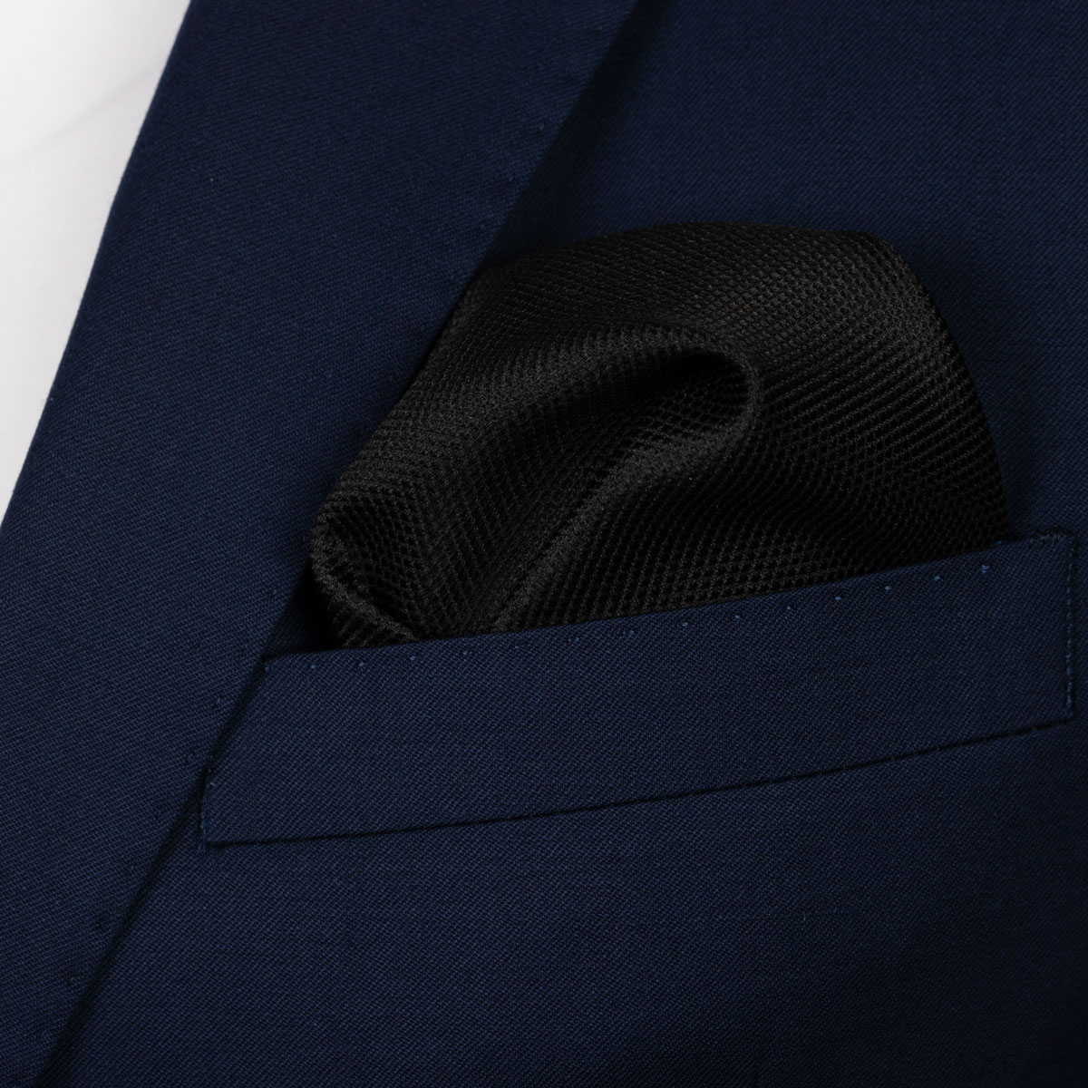 Das Einstecktuch in schwarz hat eine feine Struktur und lässt das Tuch leicht glänzen. Der Stoff besteht aus reiner Seide.