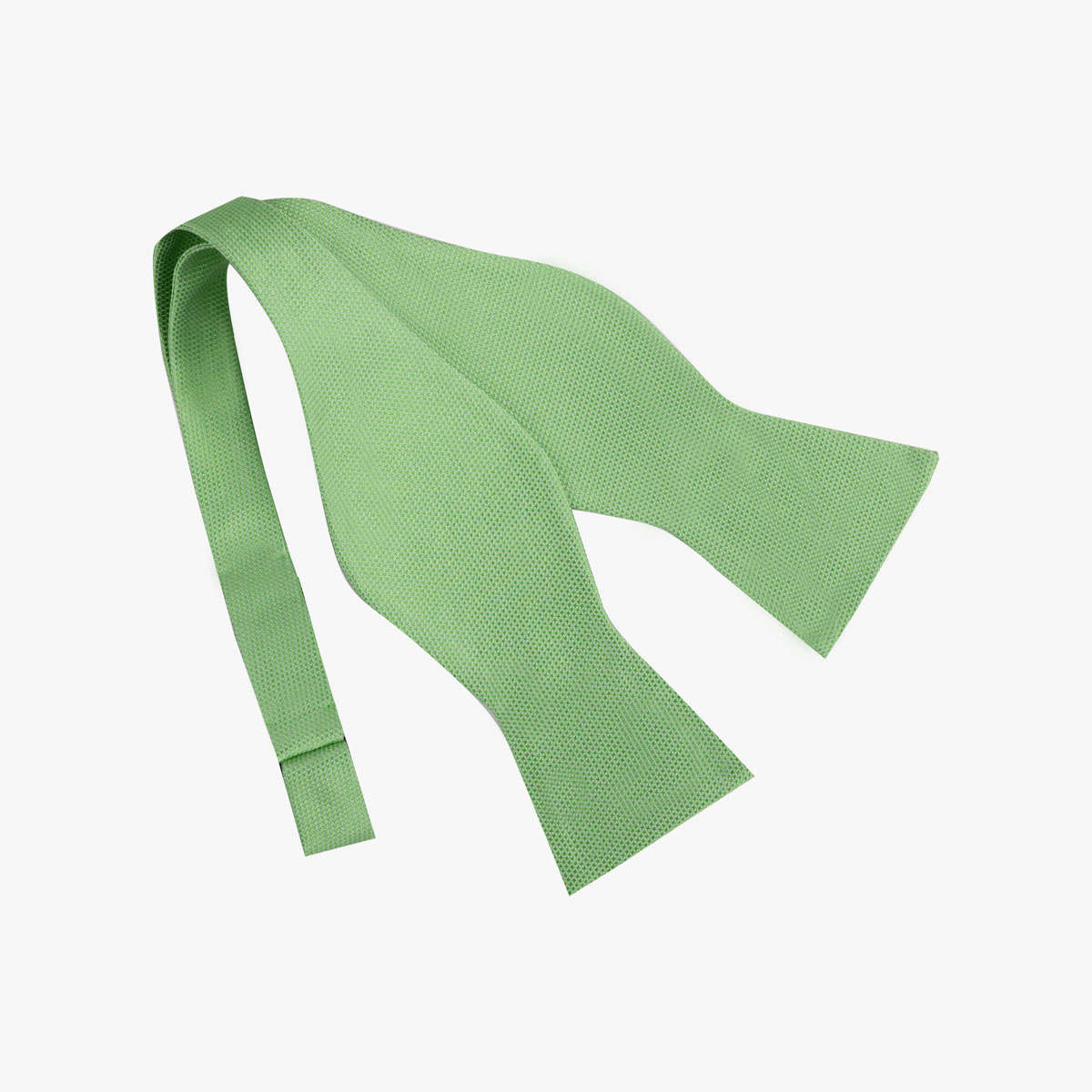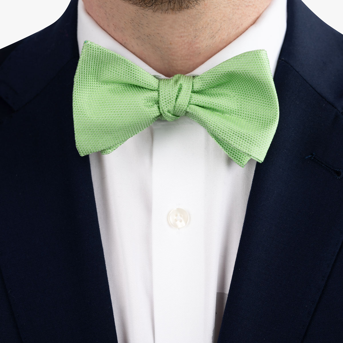Die grüne Fliege hat eine feine Struktur und besteht zu 100% aus Seide. Die Struktur bringt den natürlichen Glanz der Seidenfasern wunderschön zur Geltung.