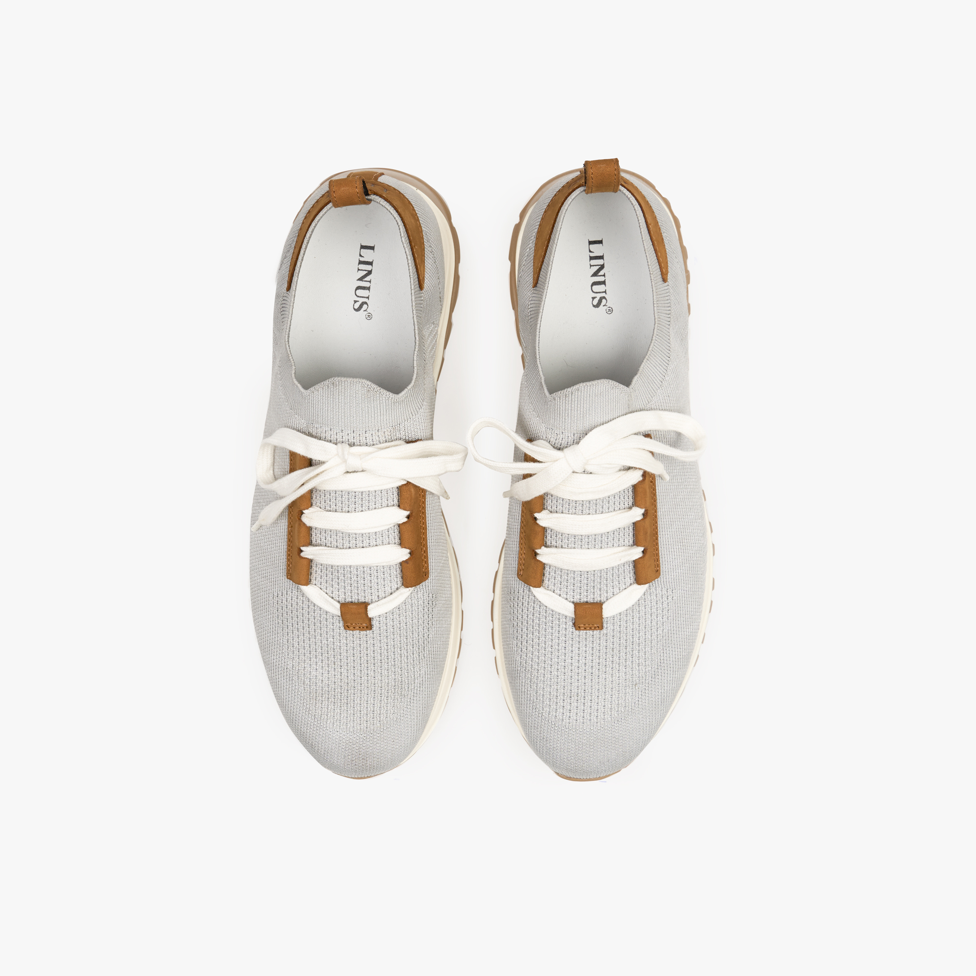 Der Sneaker in der Farbe Grau besteht aus flexiblem Strick und bietet daher hohen Tragekomfort. Er passt sich durch dem Stoff der Fußform perfekt an, bietet aber dennoch Halt.