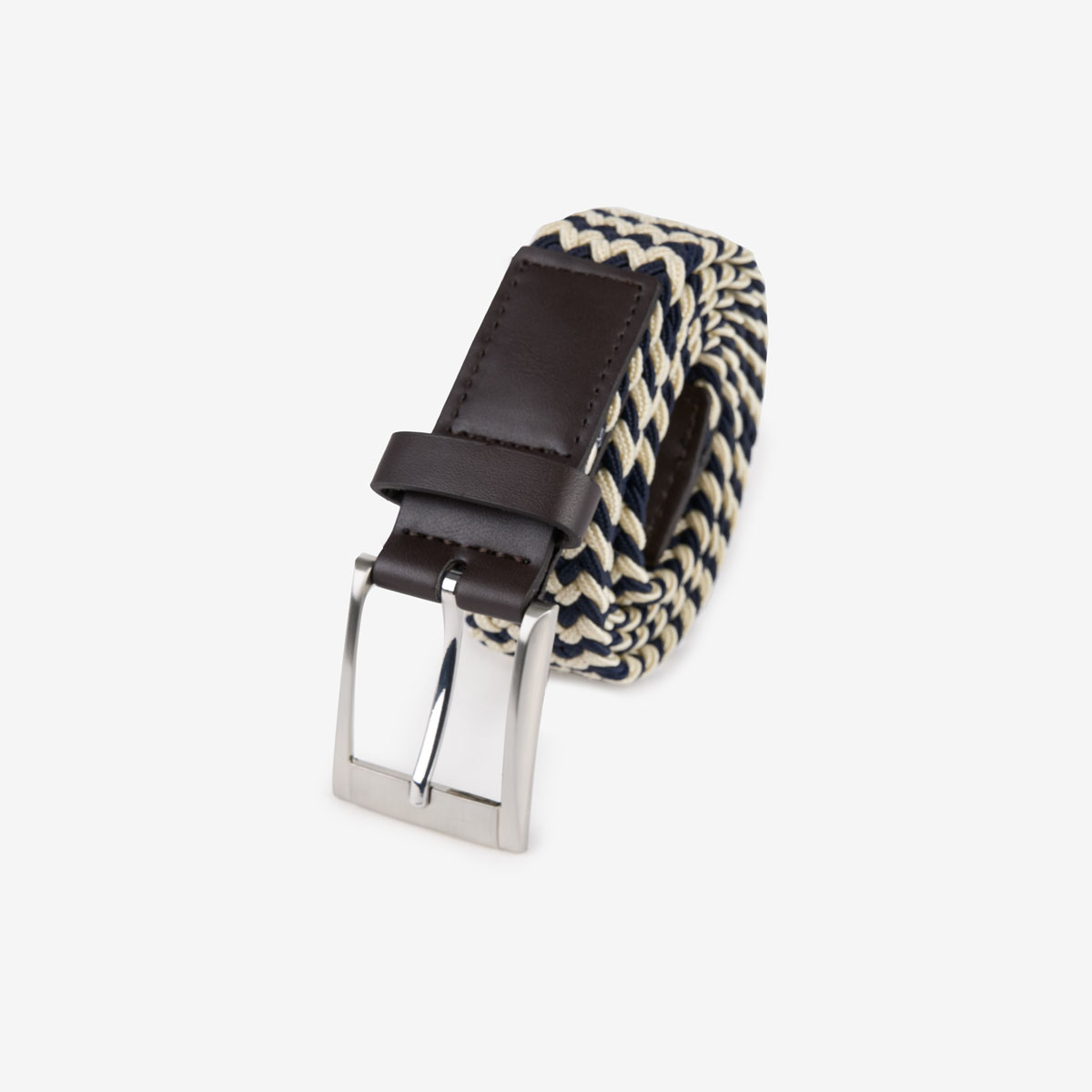 Unser beige und blauer Geflochtener Elastikgürtel vereint Stil und Komfort. Die elastische Struktur gewährleistet eine perfekte Passform, während die silberne Schnalle und die Lederelemente an den Enden für eine elegante Note sorgen. Vielseitig einsetzbar und in der Länge verstellbar - der ideale Begleiter für einen modischen Look.