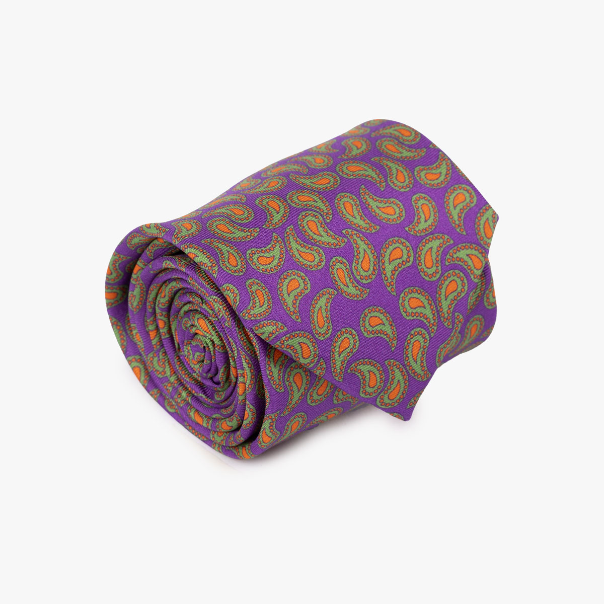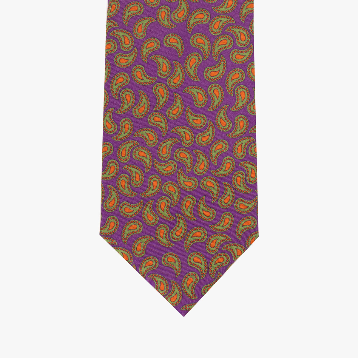 Krawatte aus 100% reiner Seide in elegantem Lila und Grün, veredelt mit feinen Paisley-Applikationen. Die Musterung sorgt für einen stilvollen Blickfang und verleiht jedem Outfit eine edle Note. Die weiche, glänzende Seidenstruktur garantiert höchsten Tragekomfort und einen Hauch von Luxus. Perfekt als Accessoire für formelle Anlässe oder um Ihrem Business-Look das gewisse Etwas zu verleihen.