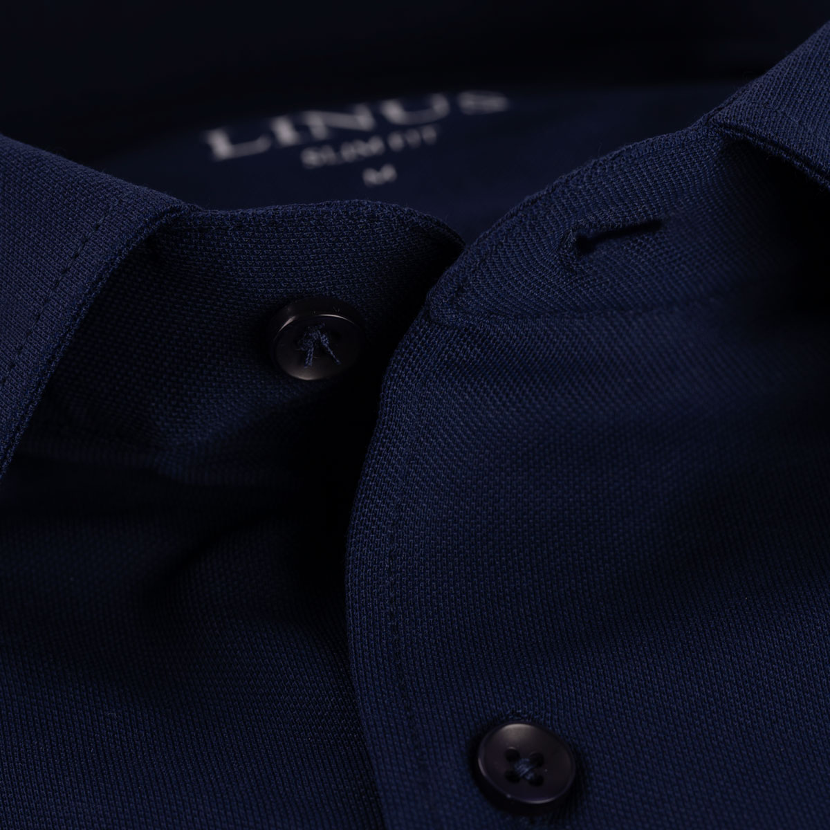 Das Hemd ist aus Jersey Stretch in dunkelblau. Es ist Modern Fit geschnitten und trägt sich sehr weich und gemütlich. Der schmale Kragen ist perfekt für Casual Outfits, die auch gut ohne Accessoires am Hals aussehen.