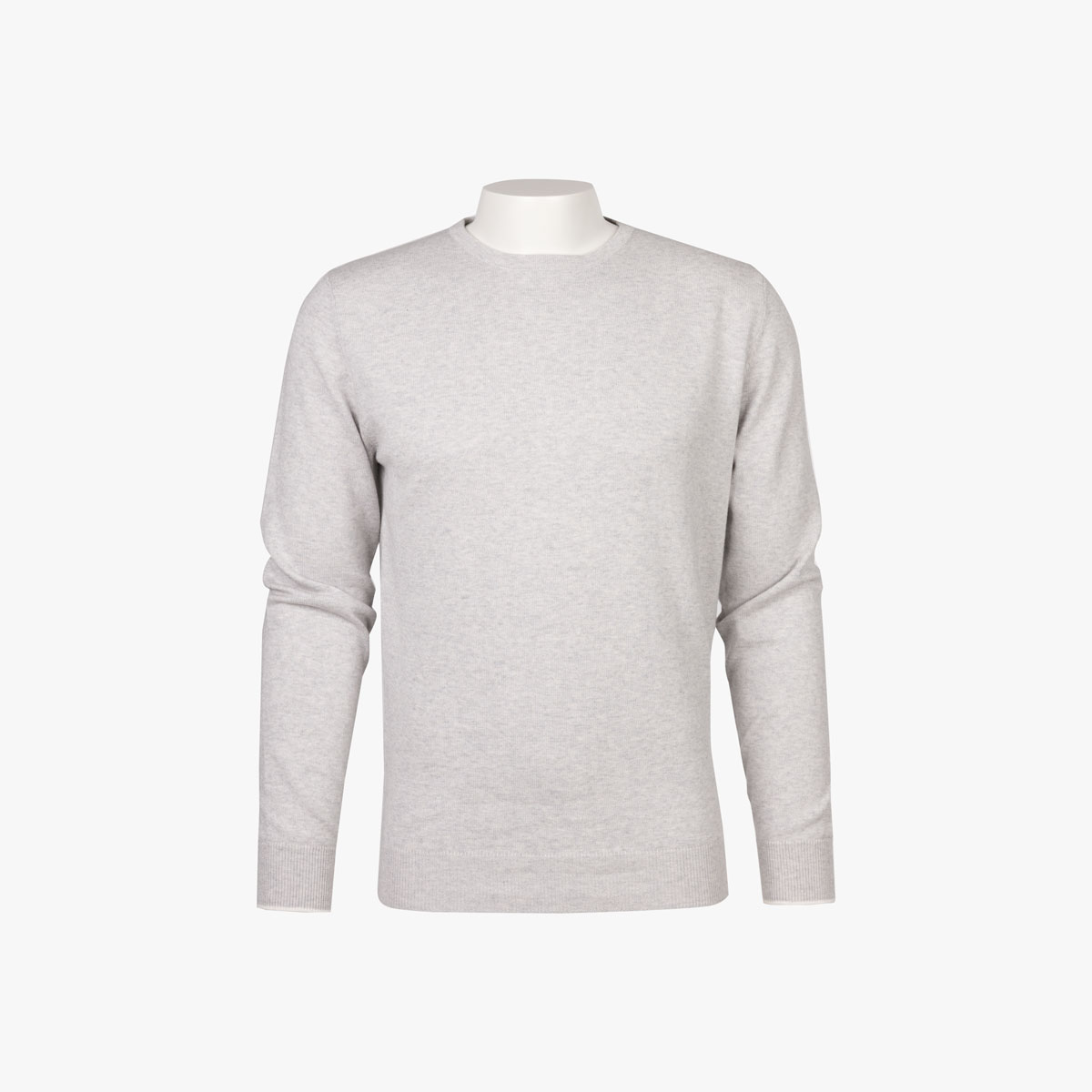 Rundhalspullover aus Baumwolle/Kaschmir in hellgrau