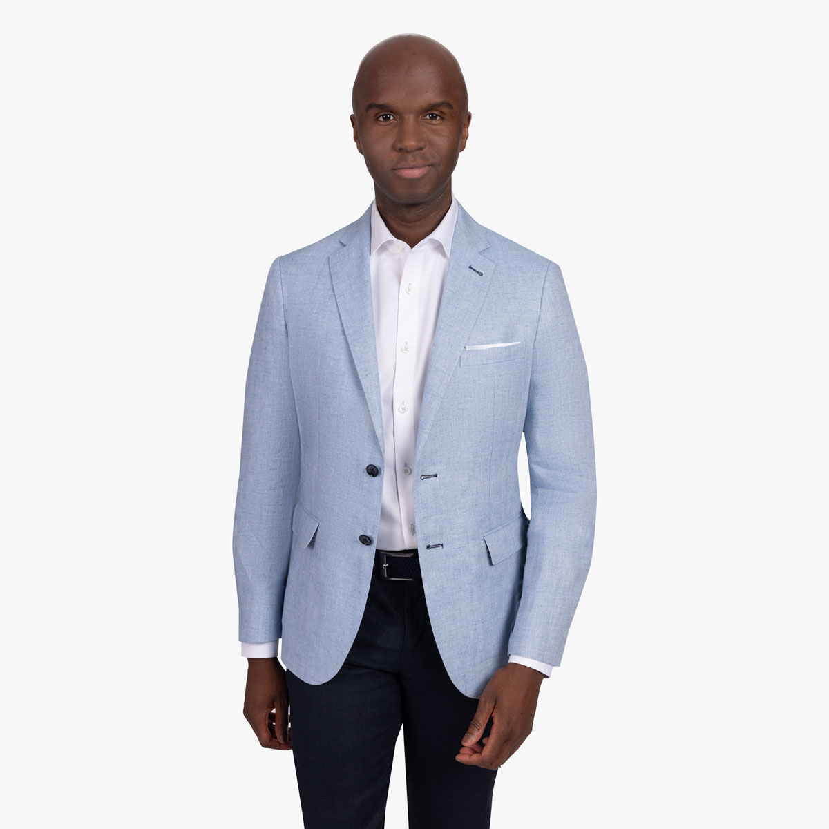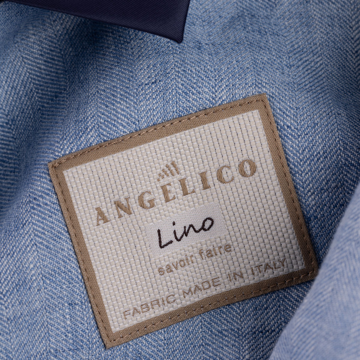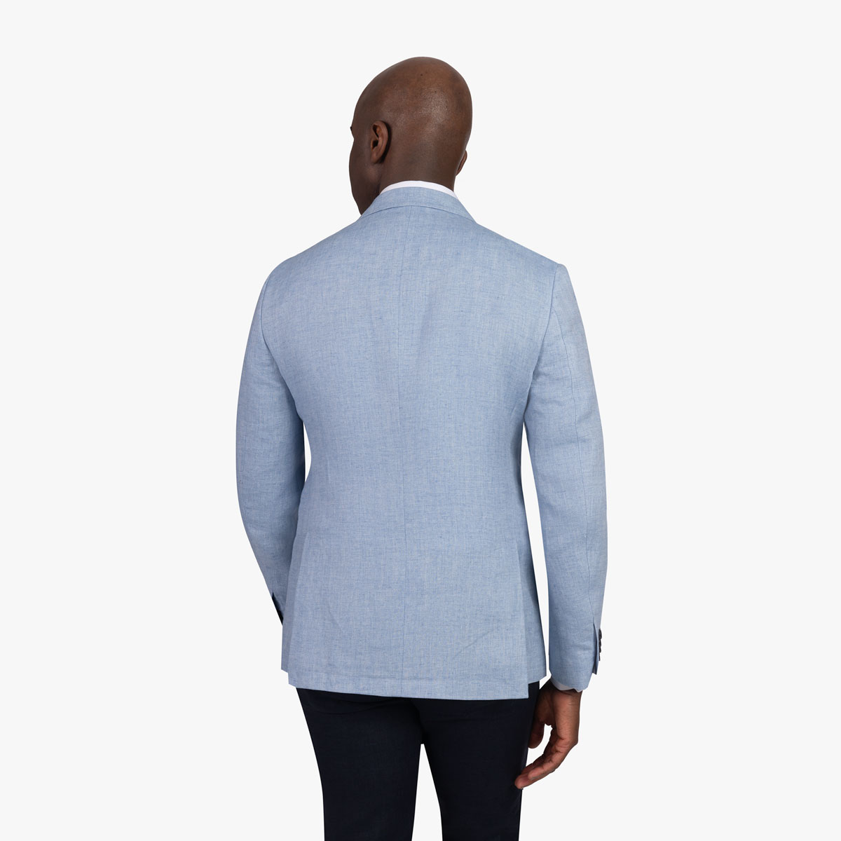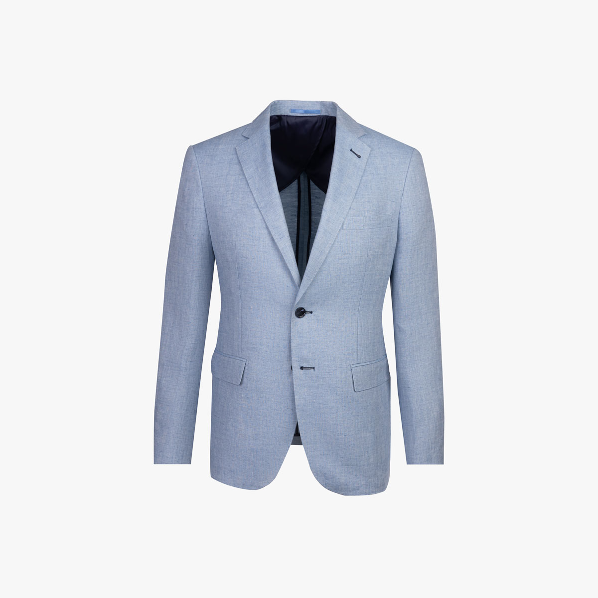 Das hellblaue Sakko Genf besteht aus feinem Leinenstoff der Weberei Lanificio Angelico s.r.l.. In den Oberstoff ist ein leichtes Fischgratmuster als Gestaltungselement eingearbeitet. Die hellblaue Farbe ist sommerlich frisch und fügt sich wunderbar in Ihren Kleiderschrank für die warme Jahreszeit ein.