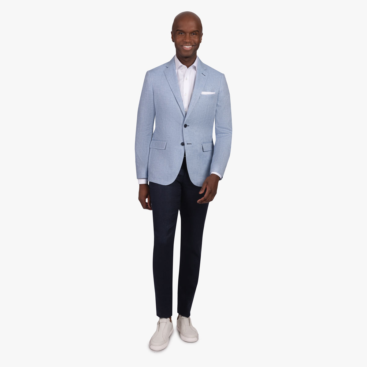 Das Sakko Genf lässt sich mühelos mit einer hellen Chino oder Tuchhose für ein lockeres Sommeroutfit kombinieren.