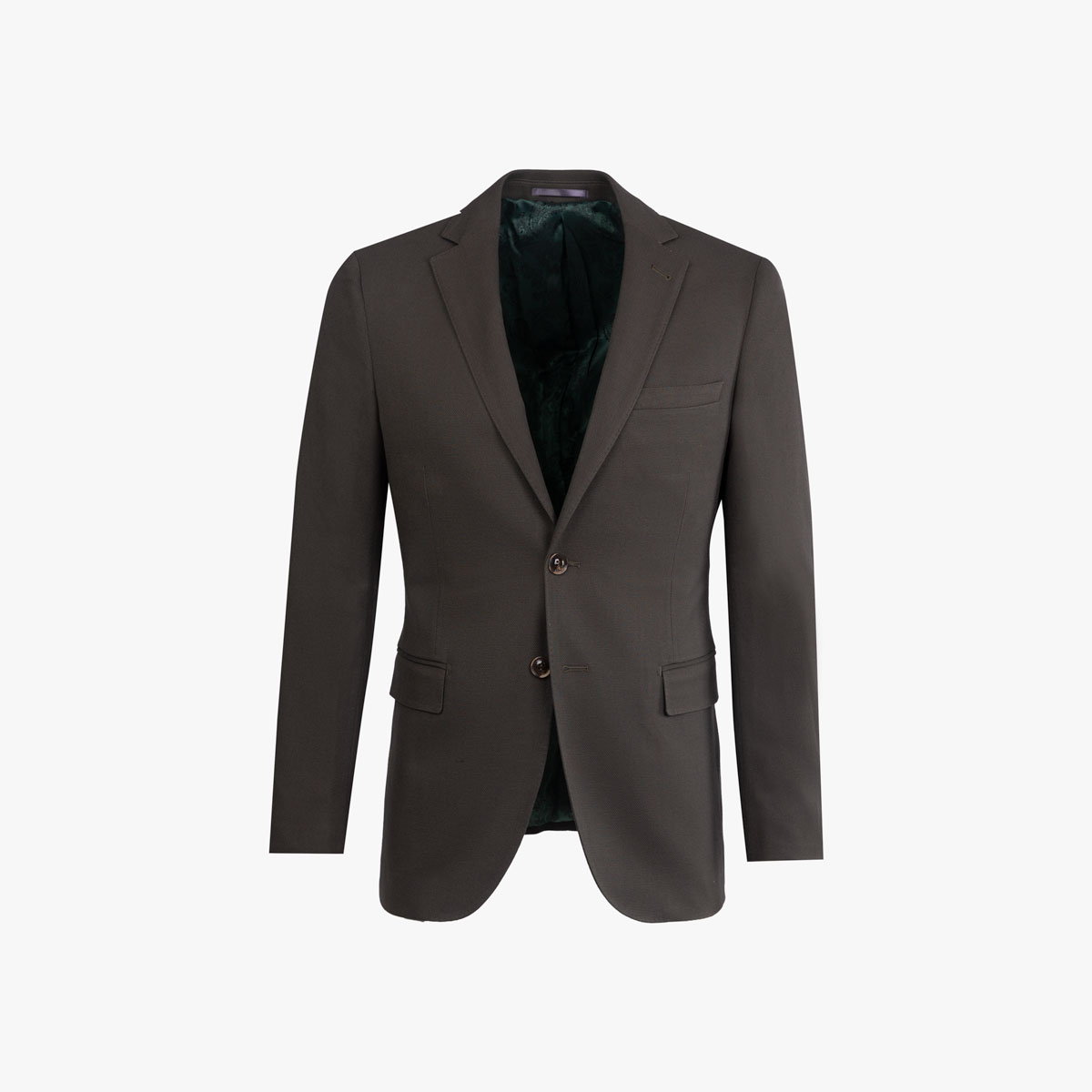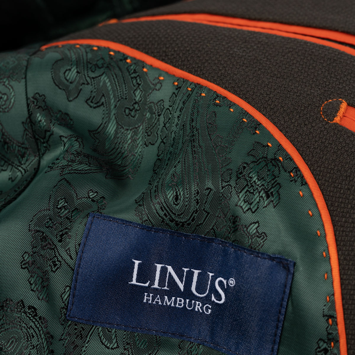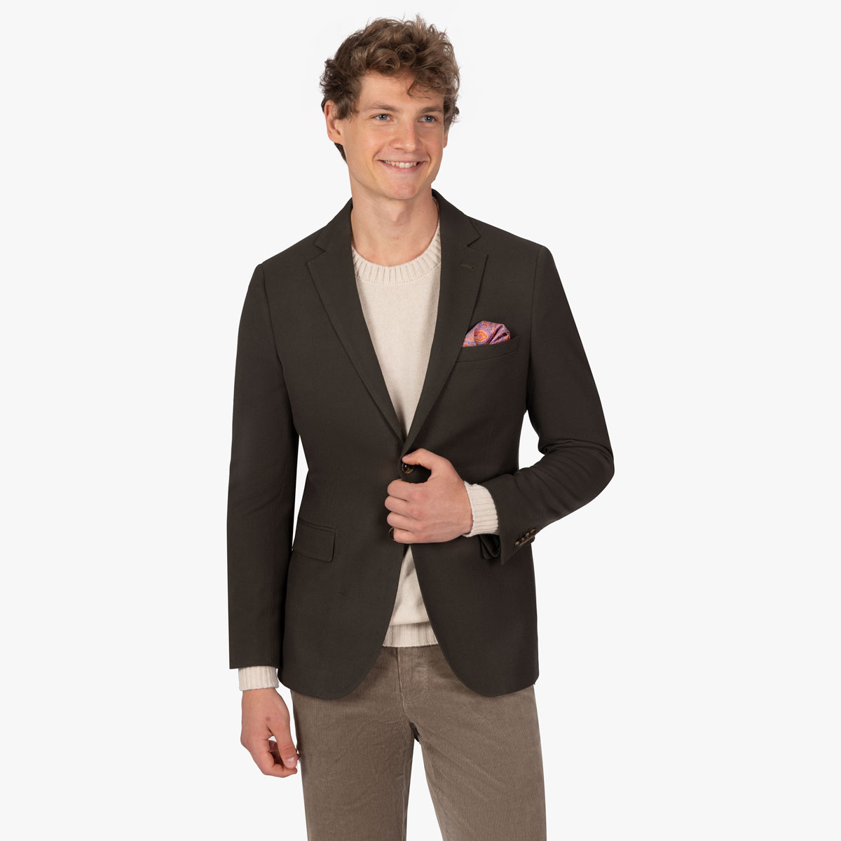 Dieses dunkelgrüne Sakko ist körperbetont geschnitten und hat ein leichtes Halbfutter. Innen ziert ein wunderschönes Paisley-Muster in Grün den Futterstoff.