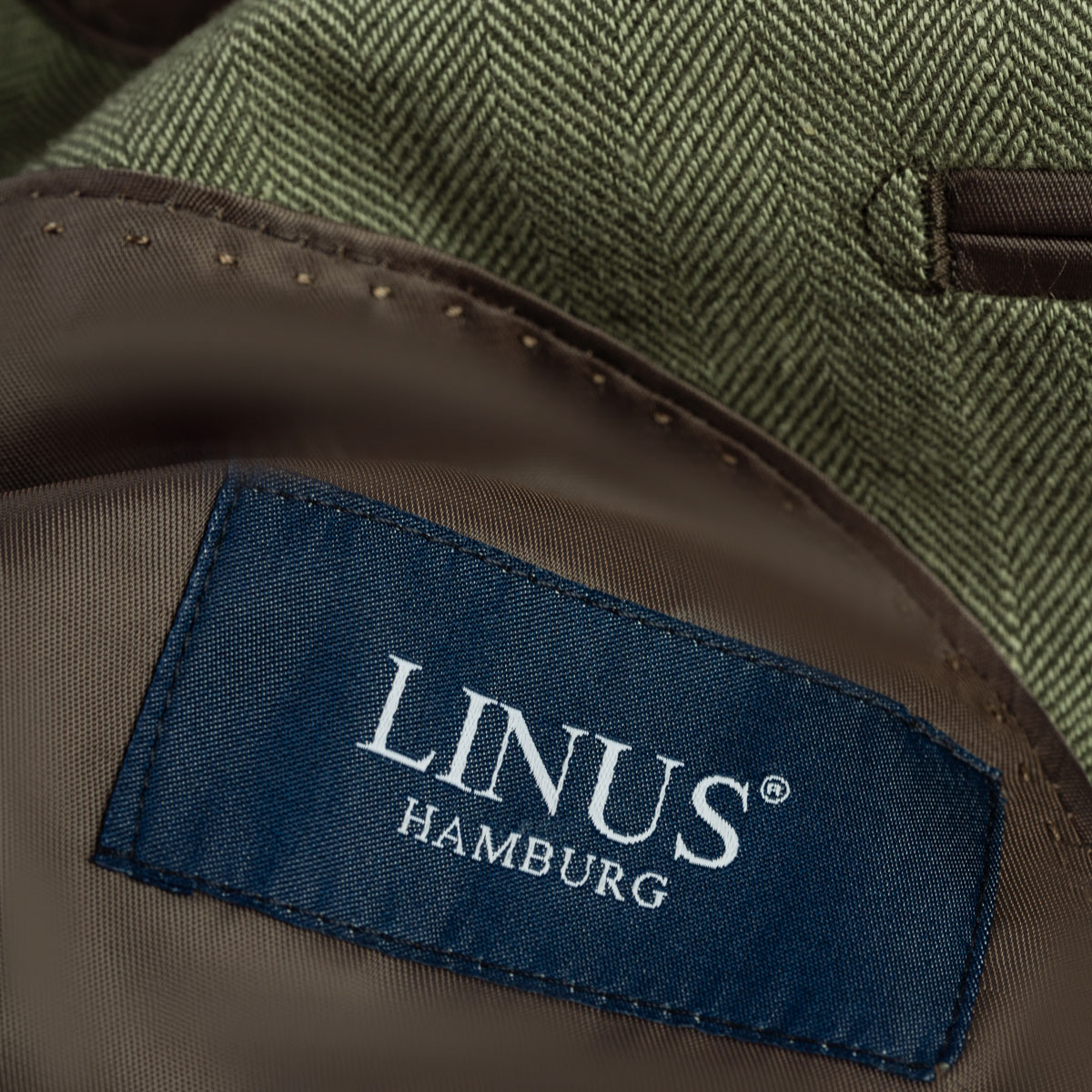 Das Sakko Genf präsentiert sich in edlem Olivgrün mit klassischem Fischgrätmuster – ein stilvolles Statement für anspruchsvolle Looks. Gefertigt aus Leinen und Baumwolle überzeugt es durch hohen Tragekomfort, natürliche Atmungsaktivität und eine markante Struktur. Mit fallendem Revers, Zwei-Knopf-Verschluss und formgebender Silhouette ist dieses Sakko die perfekte Wahl für Büro, Business-Events oder elegante Freizeit-Outfits. Ideal kombinierbar mit passenden Baukastenhosen.
