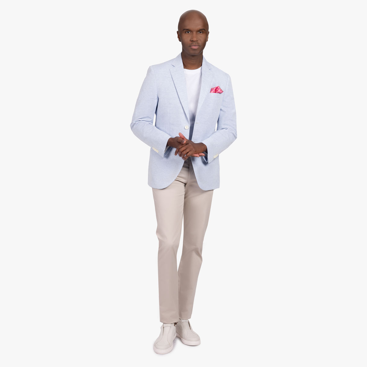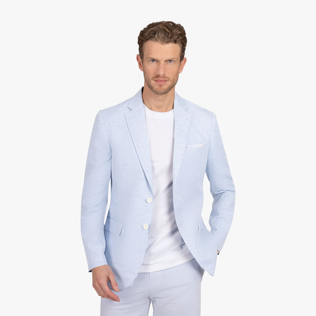 Die hellblaue Farbe lässt sich mühelos in einen sommerlichen Smart Casual Kleidungsstil integrieren. Die Kombination mit dunklen Lederschuhen oder Loafers und einer hellen Sommerhose wird von uns empfohlen.