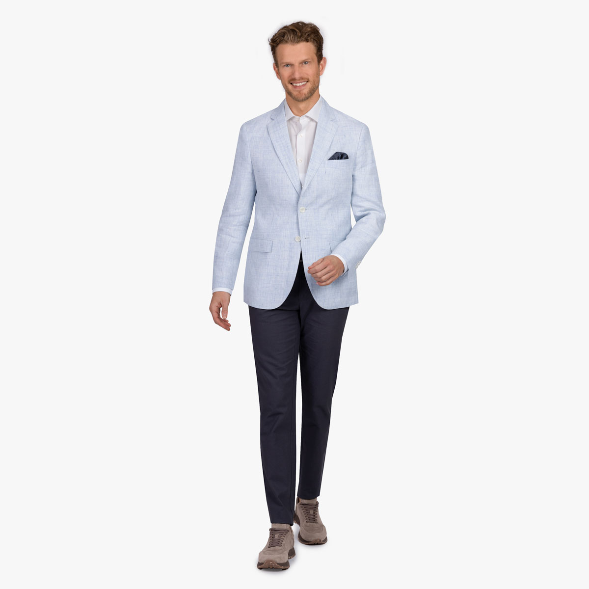 Die hellblaue Farbe lässt sich mühelos in einen sommerlichen Smart Casual Kleidungsstil integrieren. Die Kombination mit dunklen Lederschuhen oder Loafers und einer hellen Sommerhose wird von uns empfohlen.