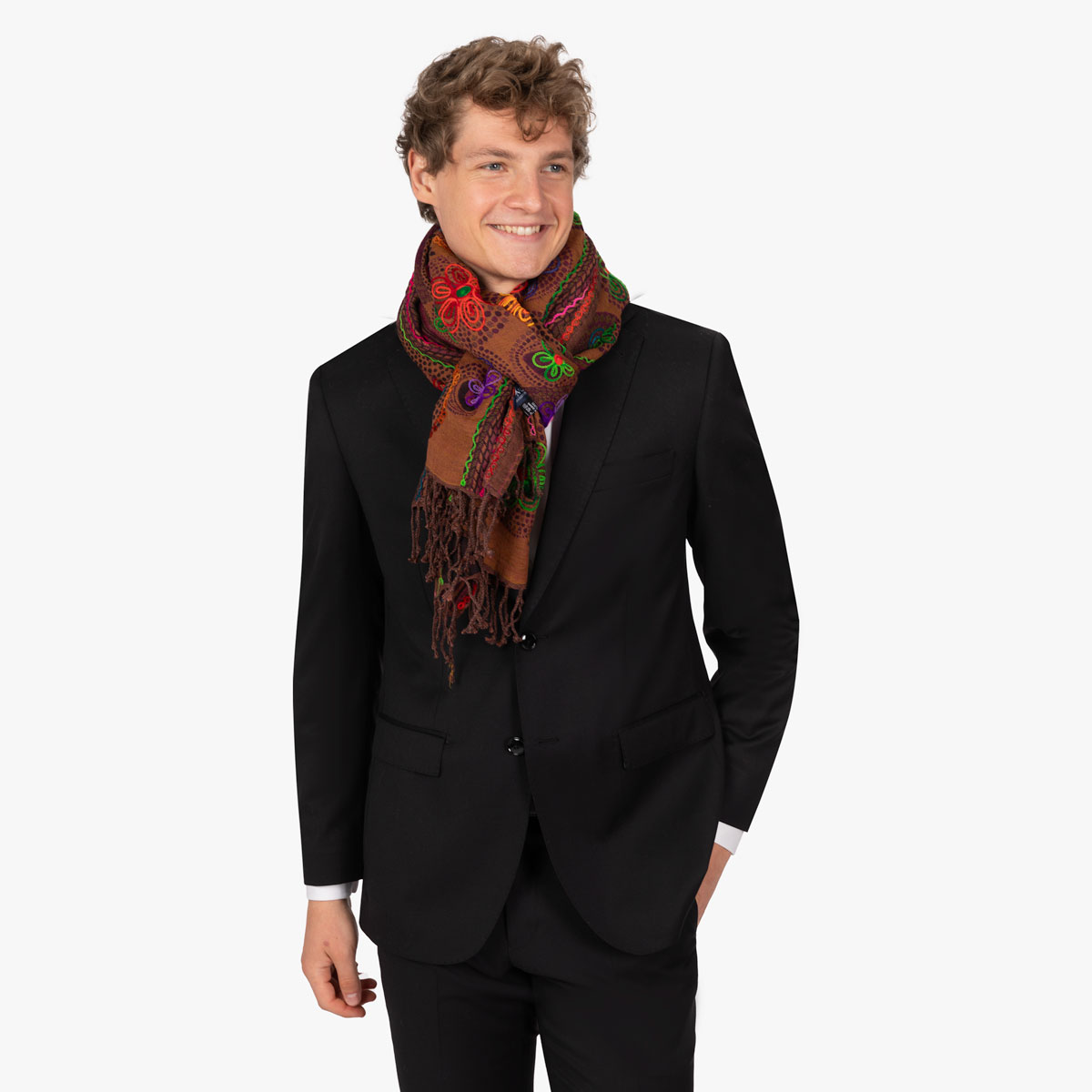 Der Schal besticht durch seine lebendige Vielfalt an Mustern, die gekonnt miteinander kombiniert sind und so ein einzigartiges Design ergeben. Die farbenfrohen, asymmetrischen Muster verleihen dem Accessoire eine verspielte Eleganz und machen es zum perfekten Hingucker für jeden Anlass. Aus weichem, angenehmem Material gefertigt, bietet der Schal nicht nur Stil, sondern auch optimalen Tragekomfort. Ideal für Männer, die gerne mit außergewöhnlichen Mustern und Farbkombinationen experimentieren.
