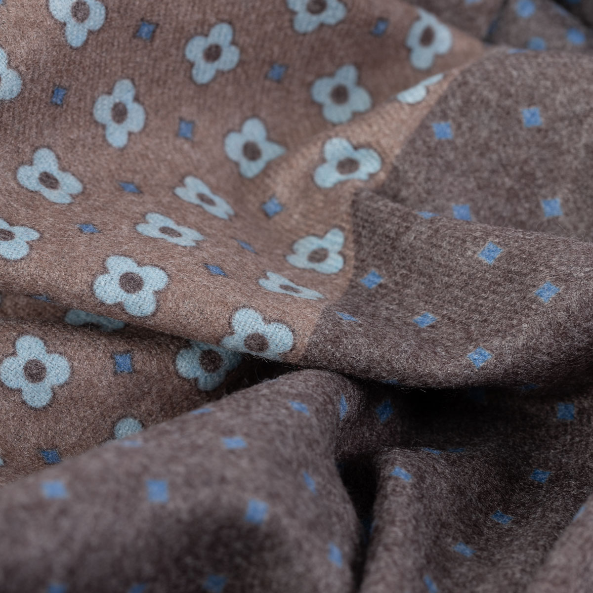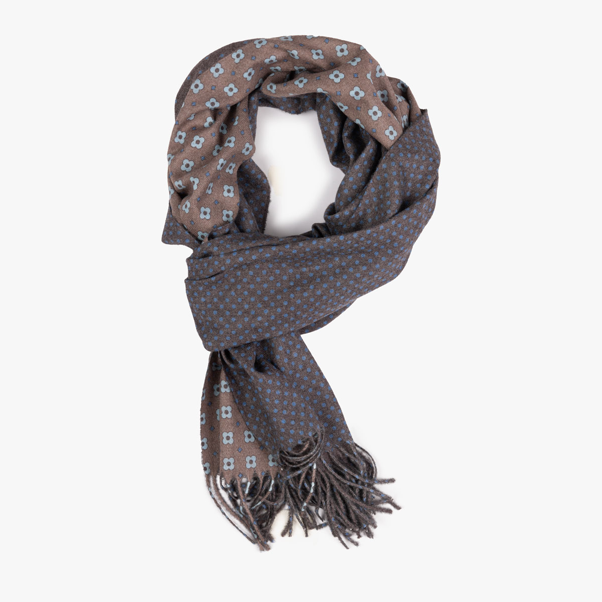 Schal in Braun mit türkisfarbenem Punkten und Mustern