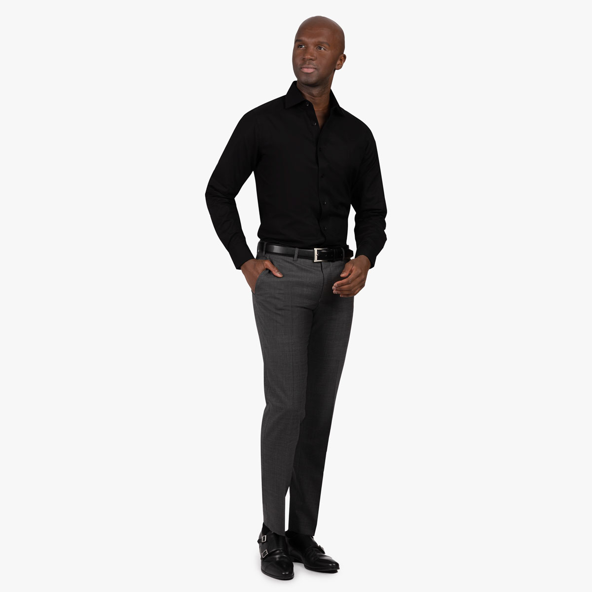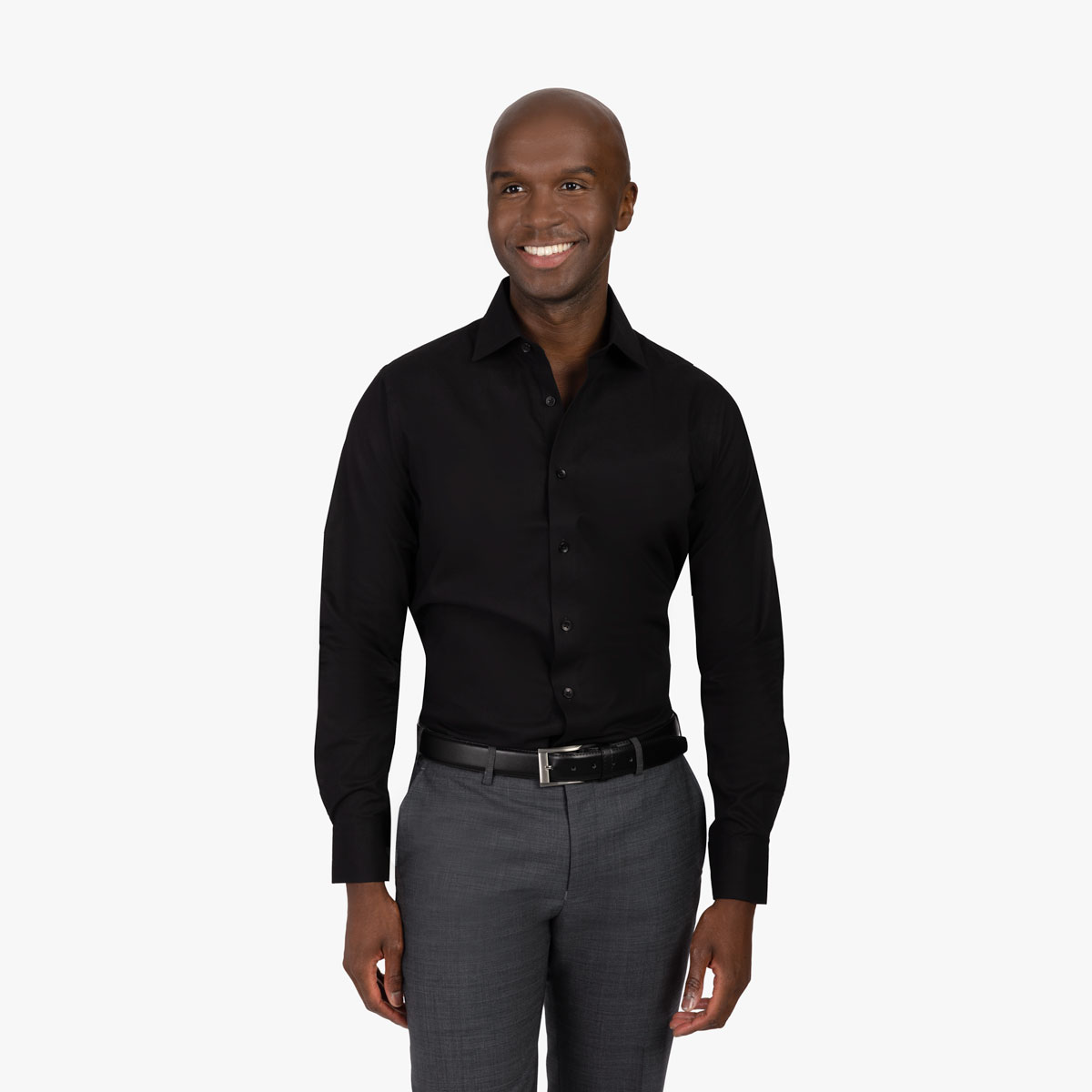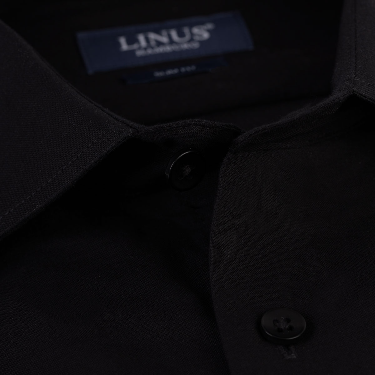 Das schwarze Slim Fit Hemd ist mit seinem luftigen Oberstoff aus 70% Baumwolle und 30% Leinen ideal für den Sommer.