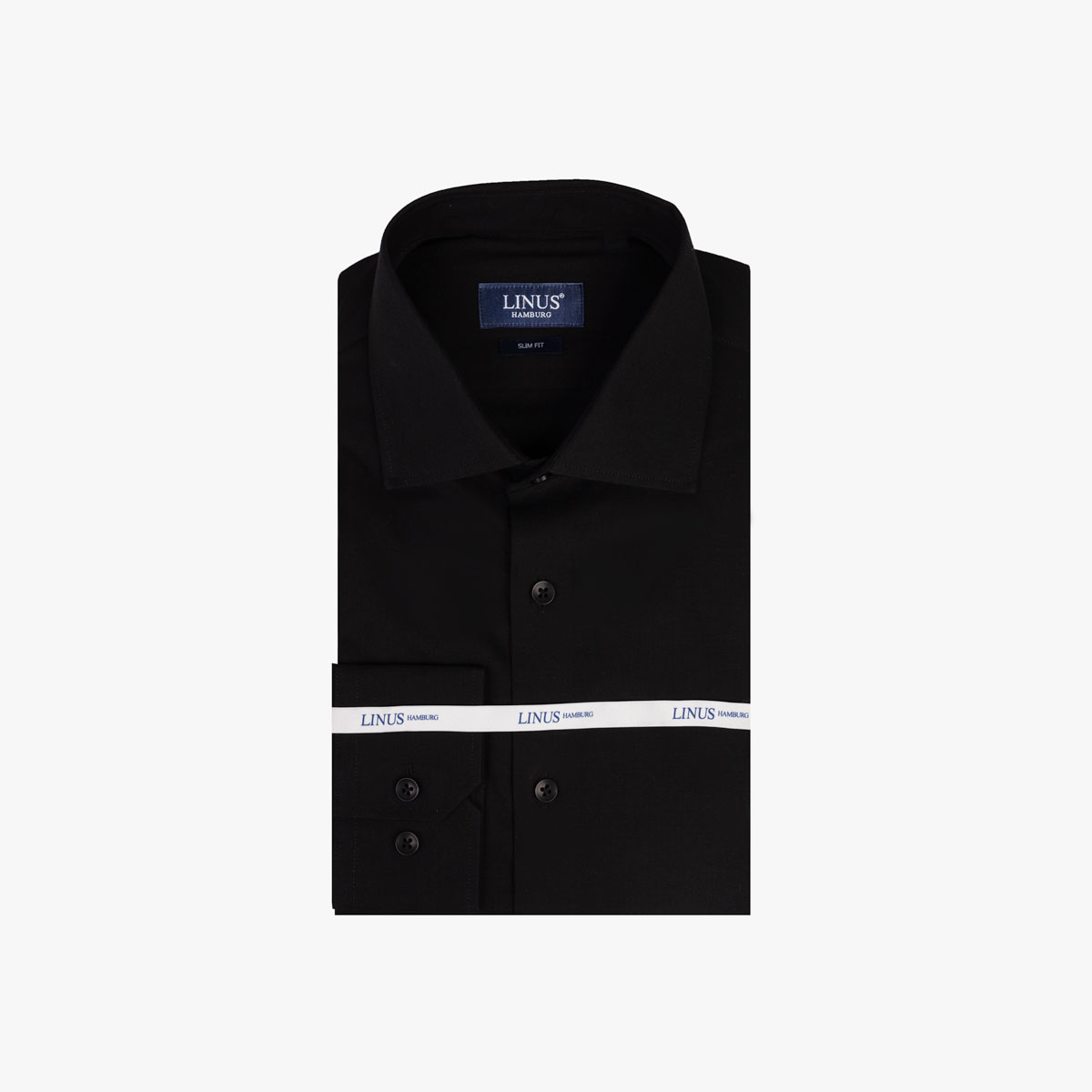 Slim Fit Hemd aus Baumwolle/Leinen in schwarz