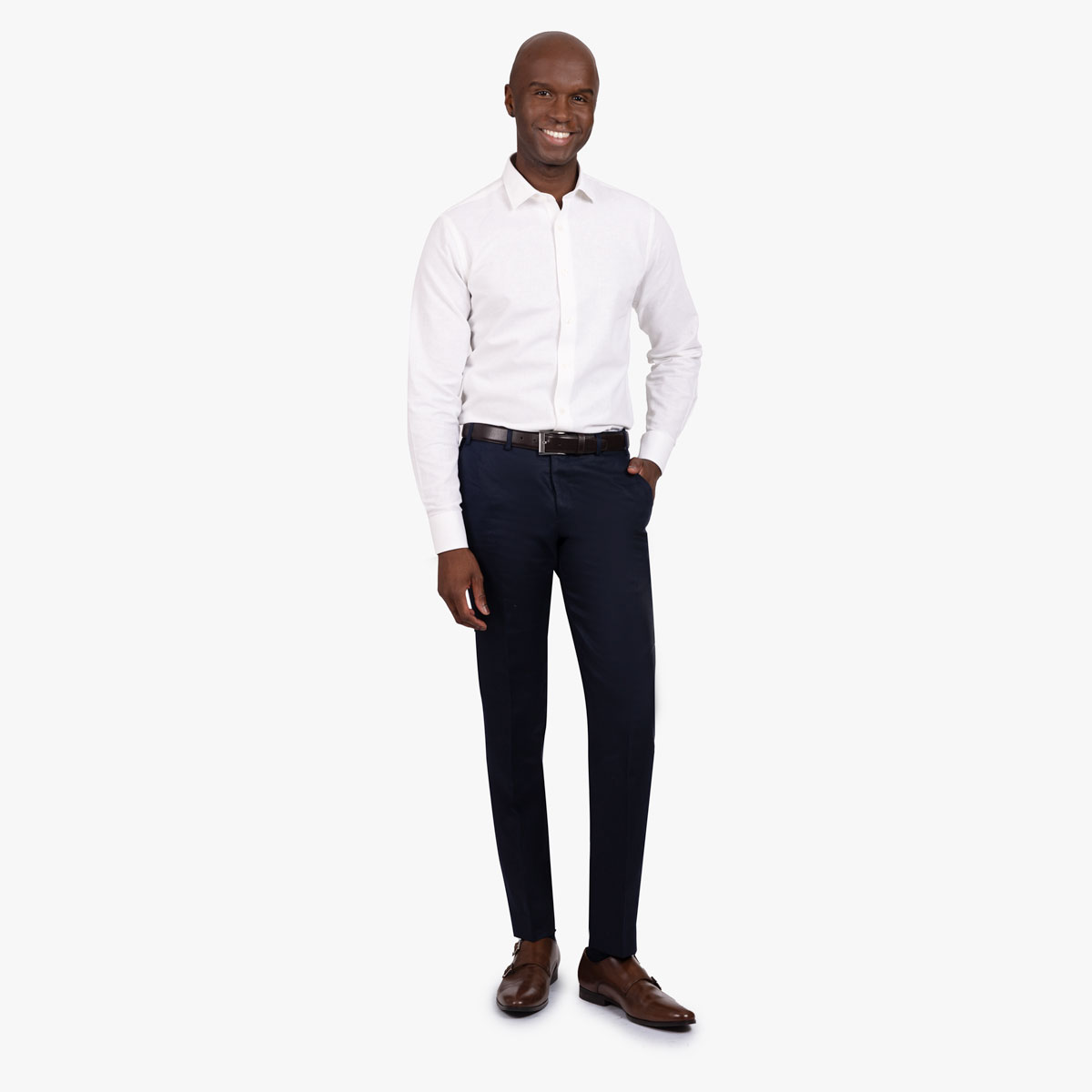 Slim Fit Hemd aus Baumwolle/Leinen in weiß