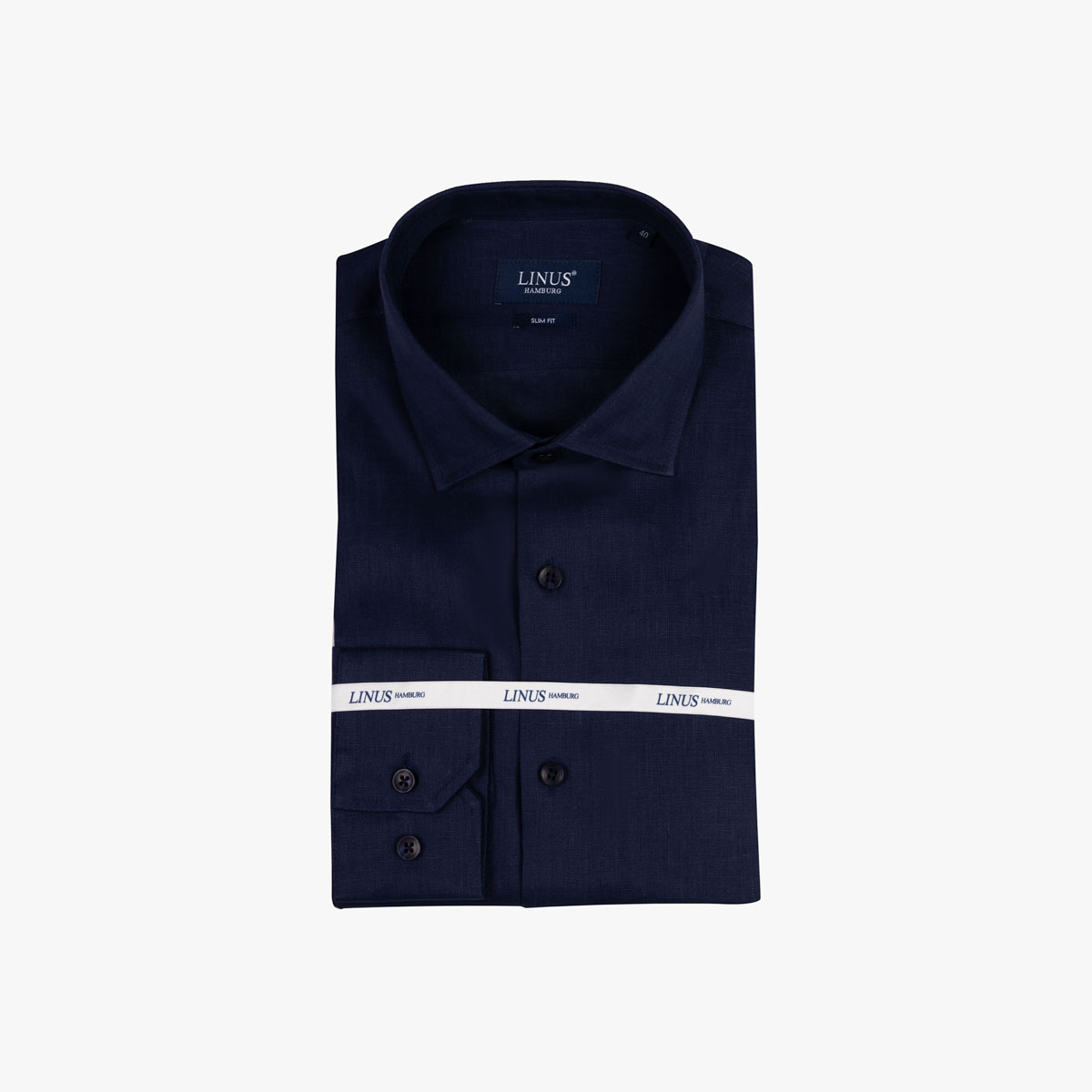 Slim Fit Hemd aus dunkelblauem reinem Leinen