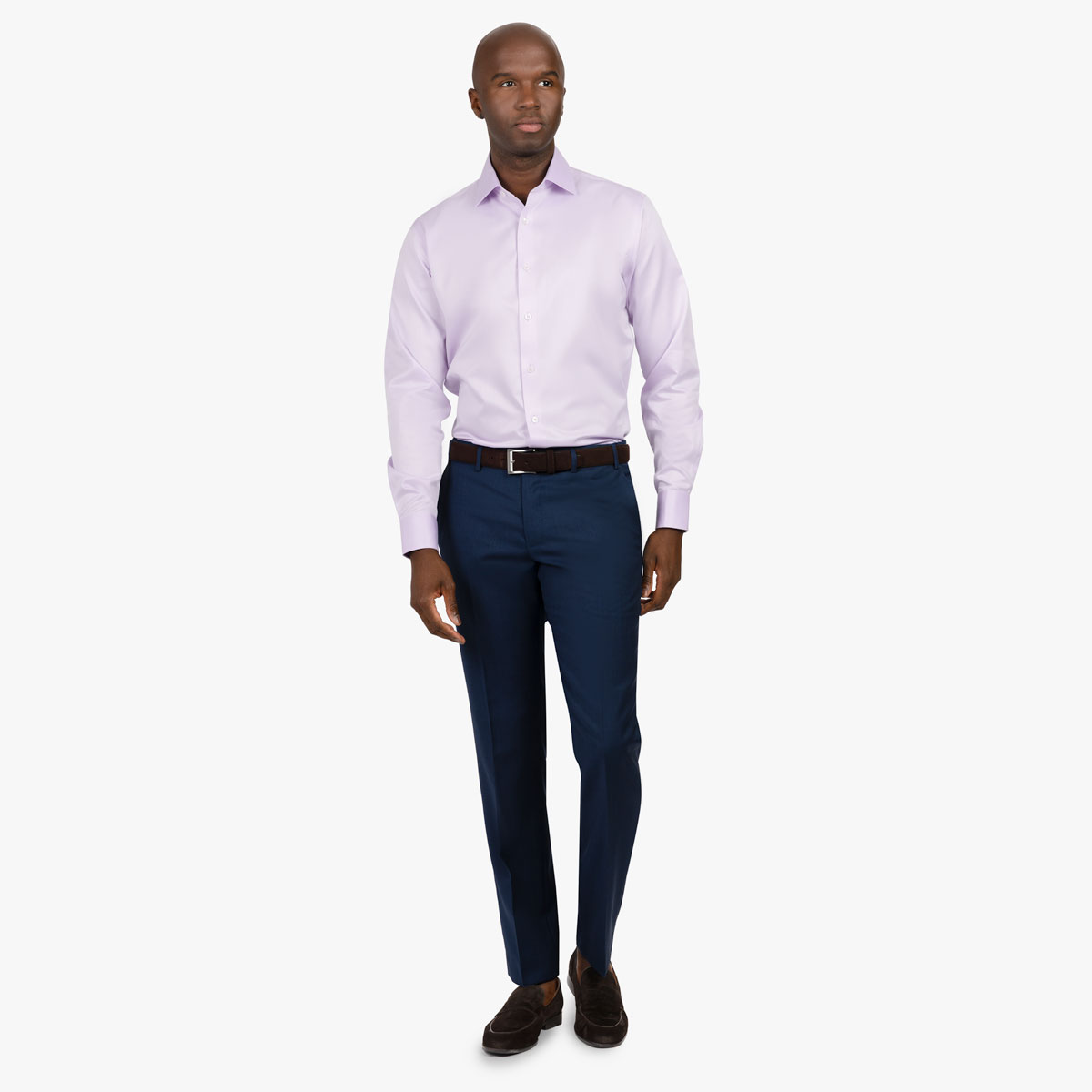 hat einen vielseitigen Kentkragen und eine Sportmanschette. Es besteht aus reiner Baumwolle.