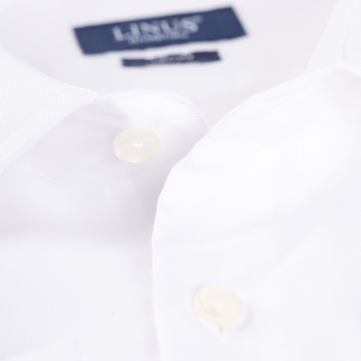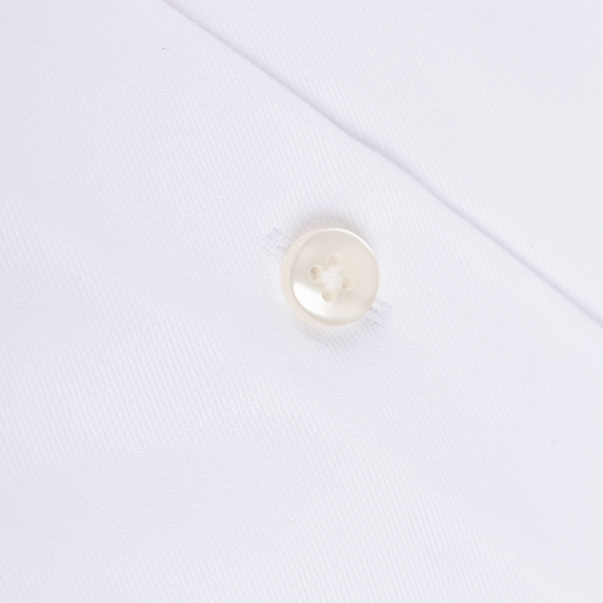 Die Ärmel dieses weißen Slim Fit Hemds sind um 4cm länger als die Ärmel unserer normalen Hemden. Passend dazu ist auch der Rumpf 3cm länger.