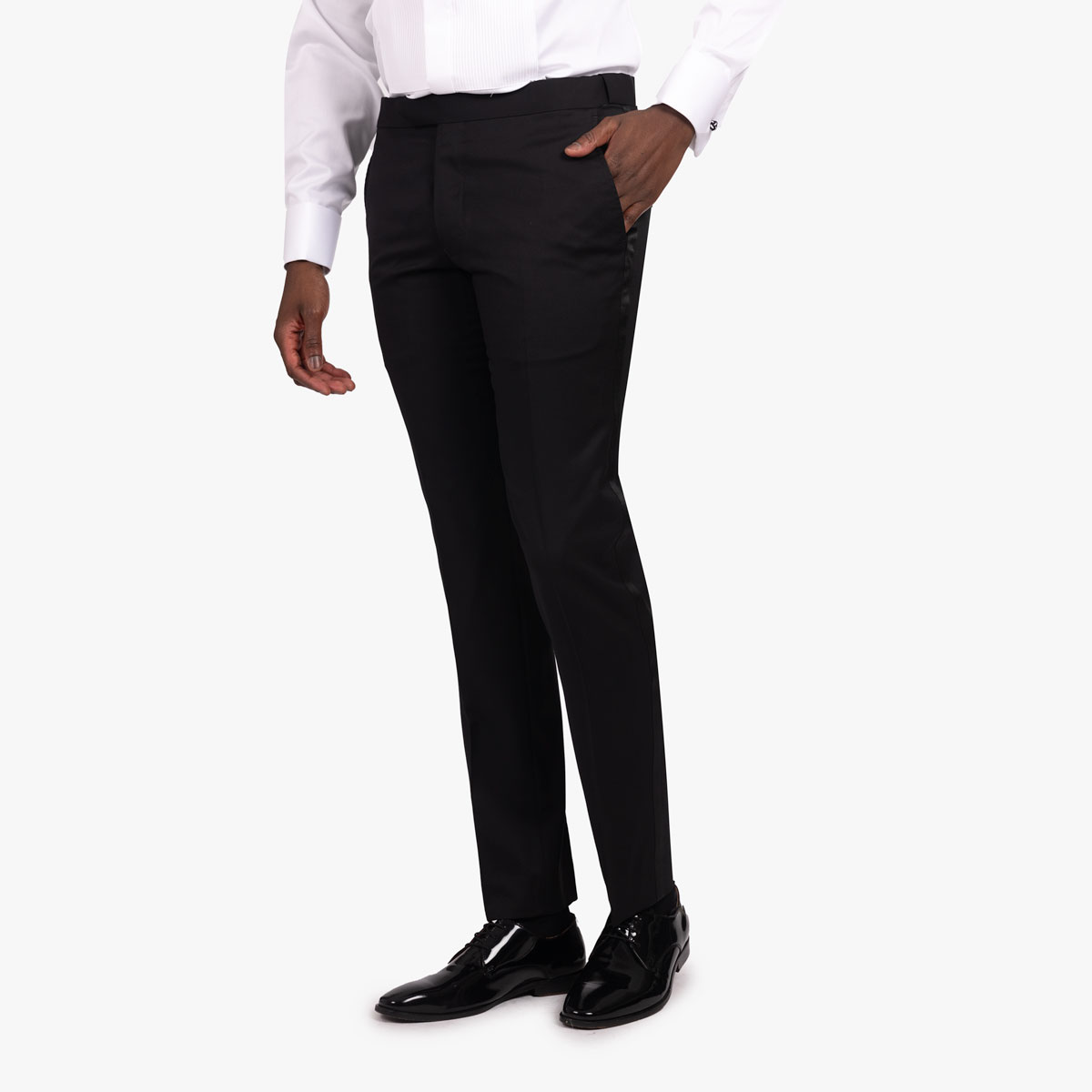 Die perfekte Hose für alle Black Tie Events im Sommer. Die Schurwolle in Super 110er Qualität ist fein und leicht.