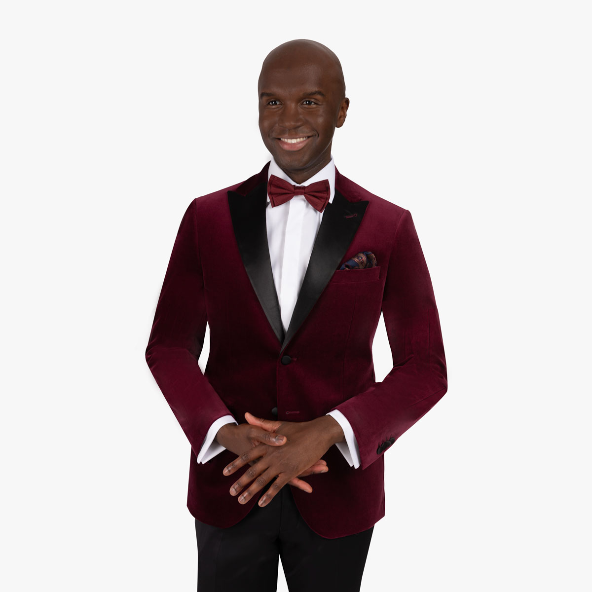 Verleihen Sie Ihrem Auftritt eine Prise Extravaganz mit unserem burgunderroten Smokingsakko. Dieses edle Samt Sakko ist der Inbegriff von Eleganz und Stil und eignet sich perfekt für festliche Anlässe und besondere Abende.